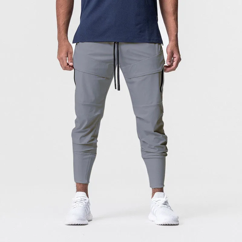 Men Running Training Gym Straight Leggings Trackpants Jogger Drawstring Skinny Trousers Cargo Pants With Pocket