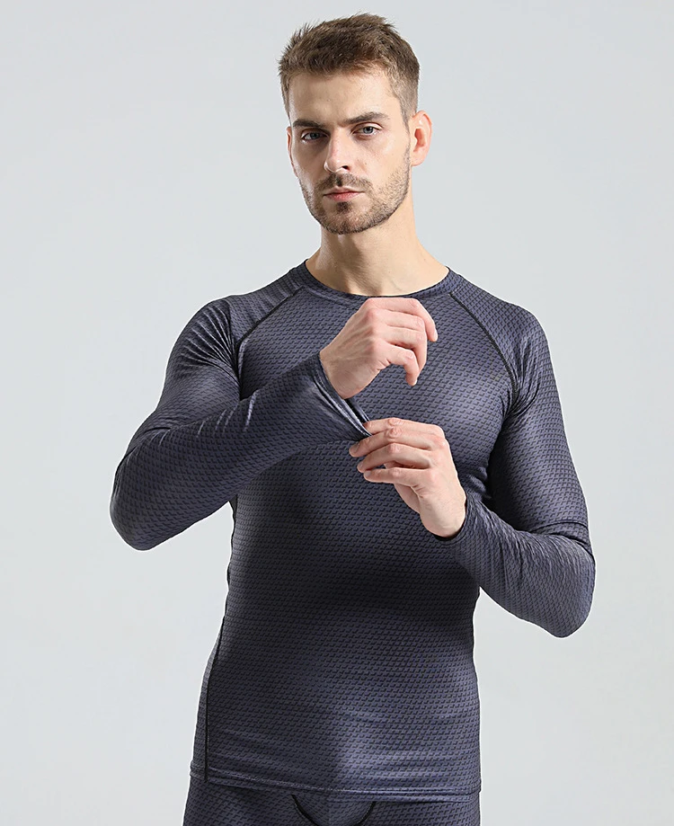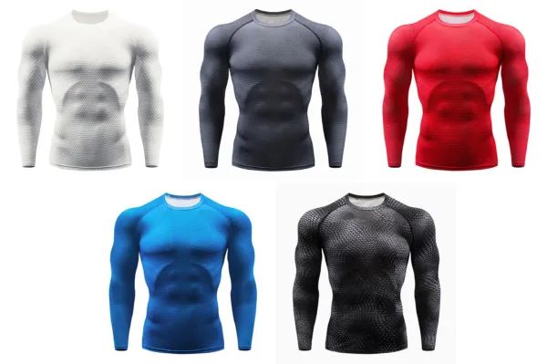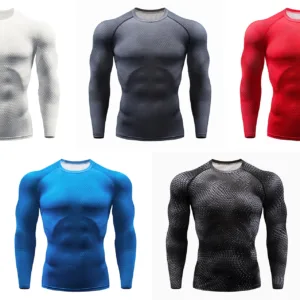 Men’s Sport Quick Dry Long Sleeve T-shirt Fitness Running Compression Top Workout Training Gym Shirt for Men