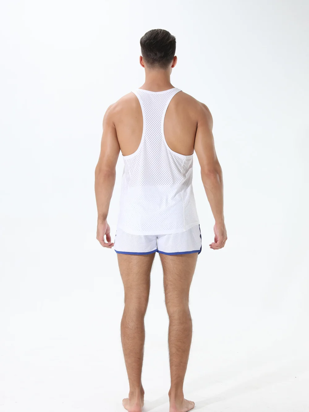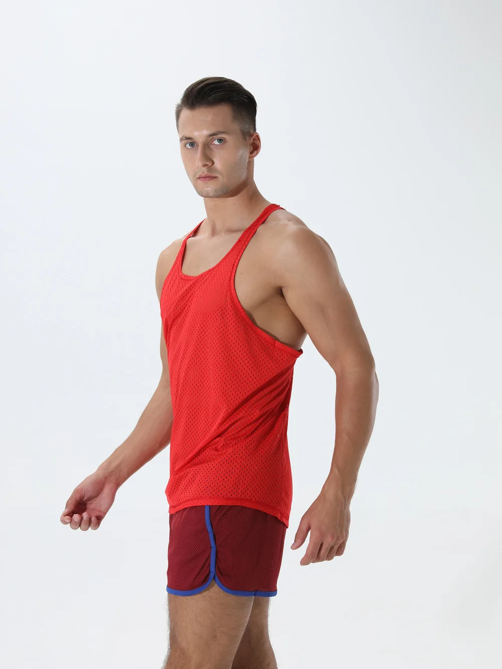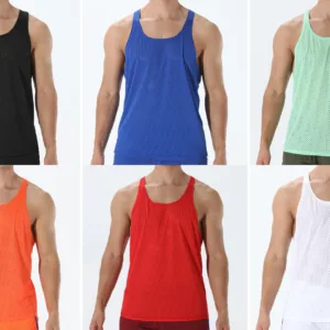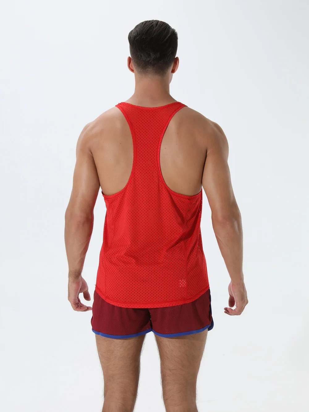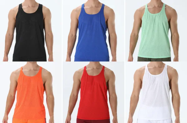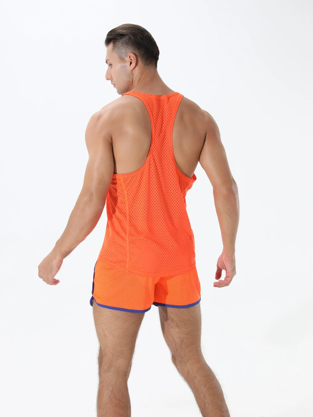 Mesh Hollow Out Men’s Sporty Lightweight Running Vest Breathable Quick-Drying Outdoor Marathon Sleeveless Racer Tank Top