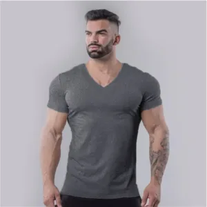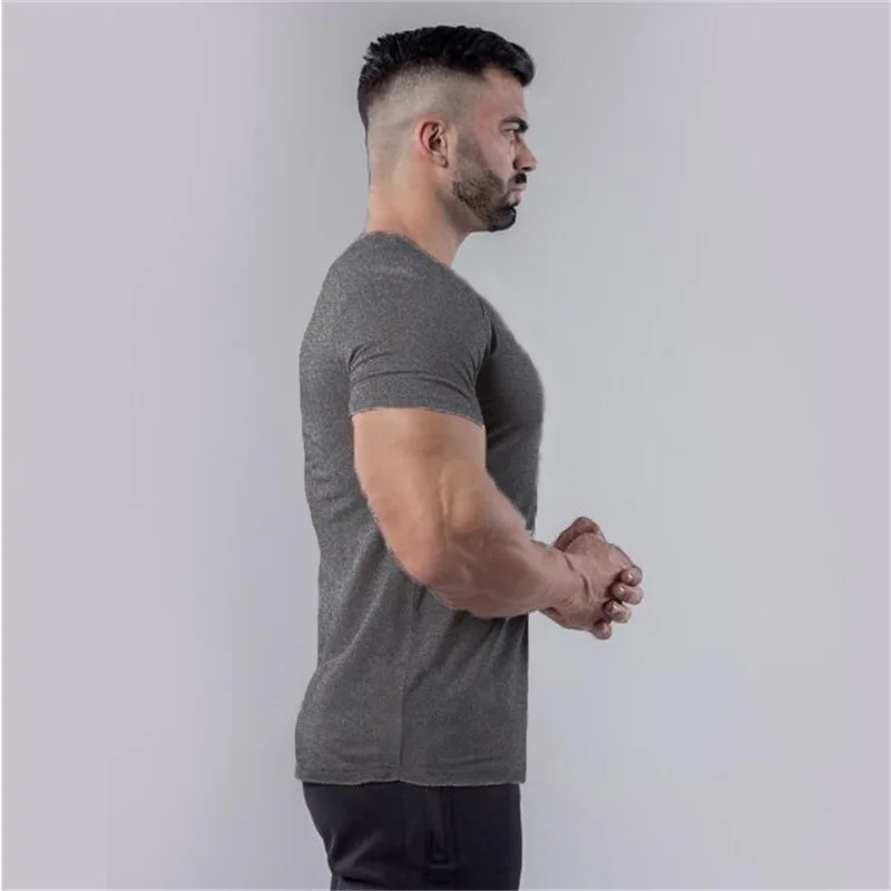 Product Name Muscle Training Men Running Shirts Top Blank Solid Style Slim Fit Short Sleeve V Neck Quick Dry Compression Gym T-shirts