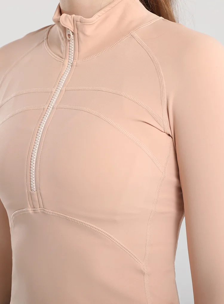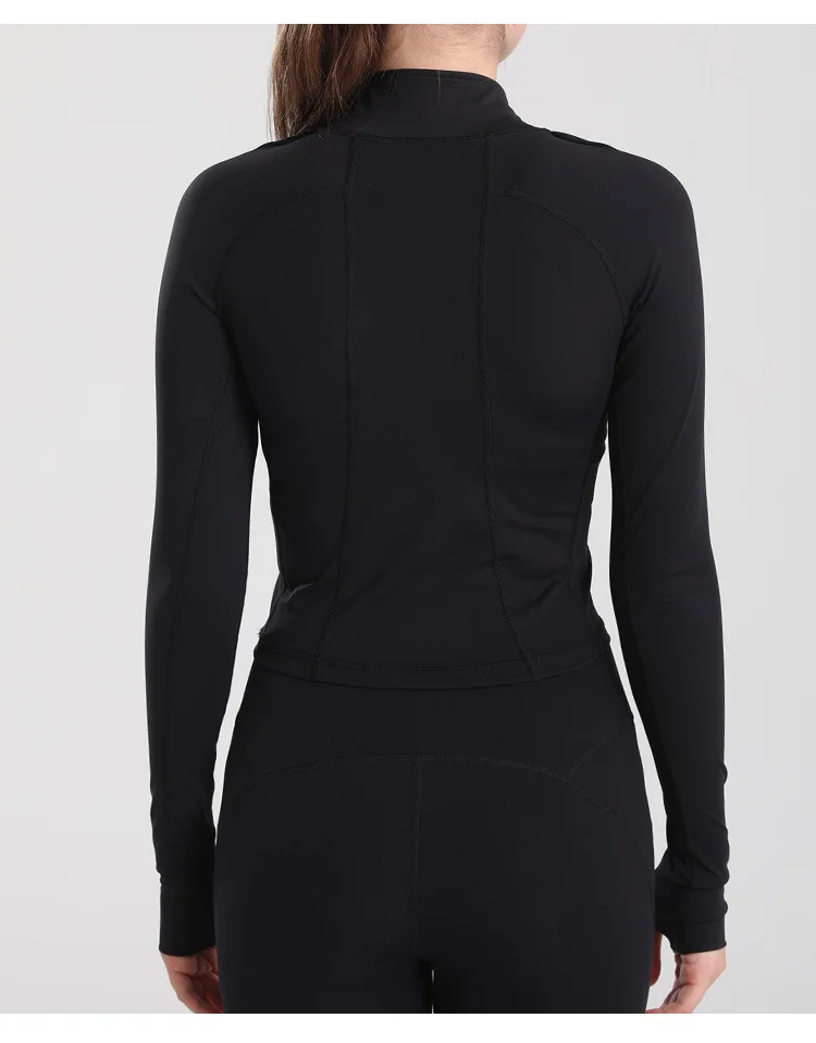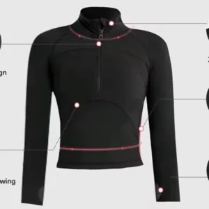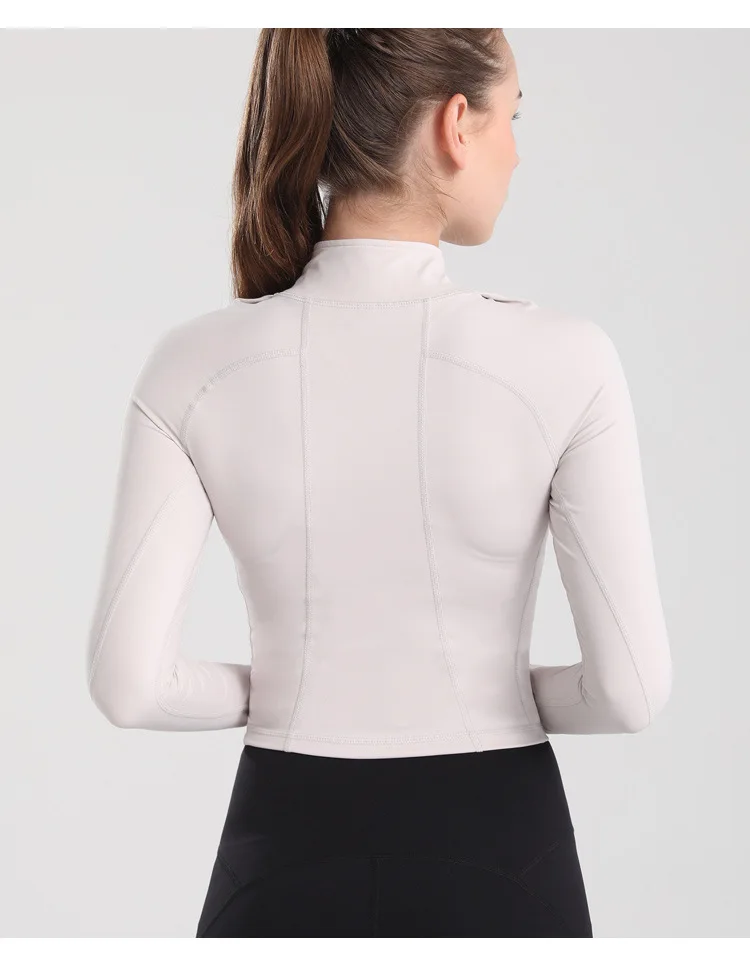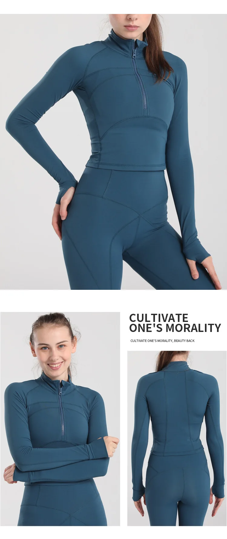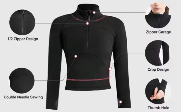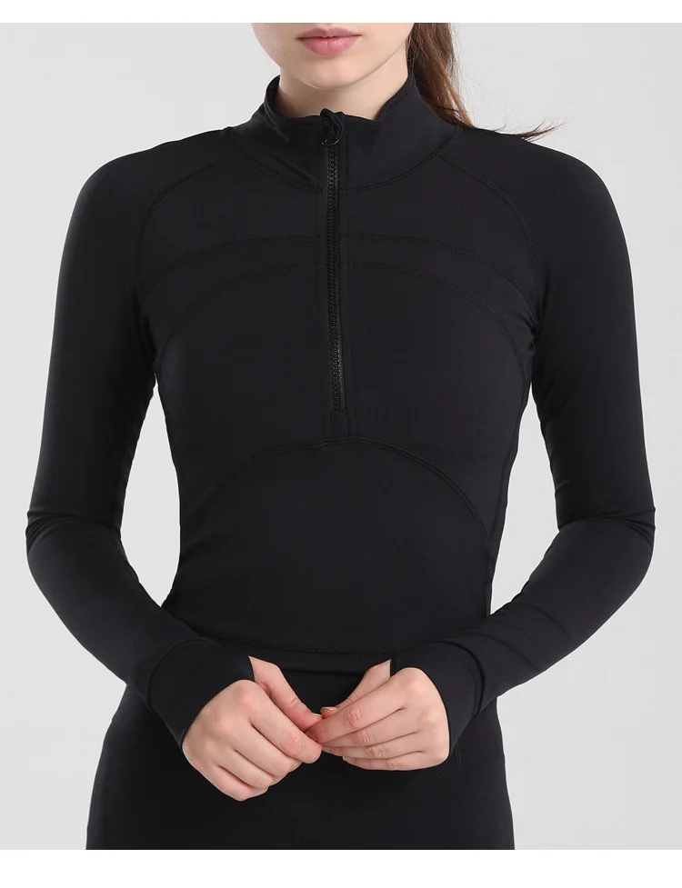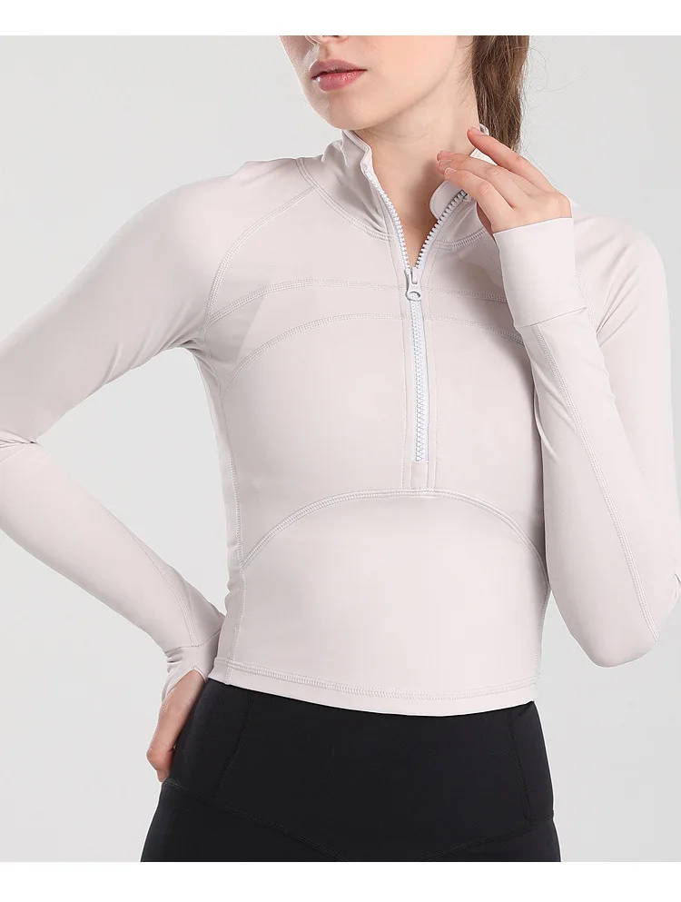 New Arrival Cropped Long Sleeve Gym Jacket Top Women Compression Pullover Athletic Outwear Slim Fit Half Zip Sweatshirt