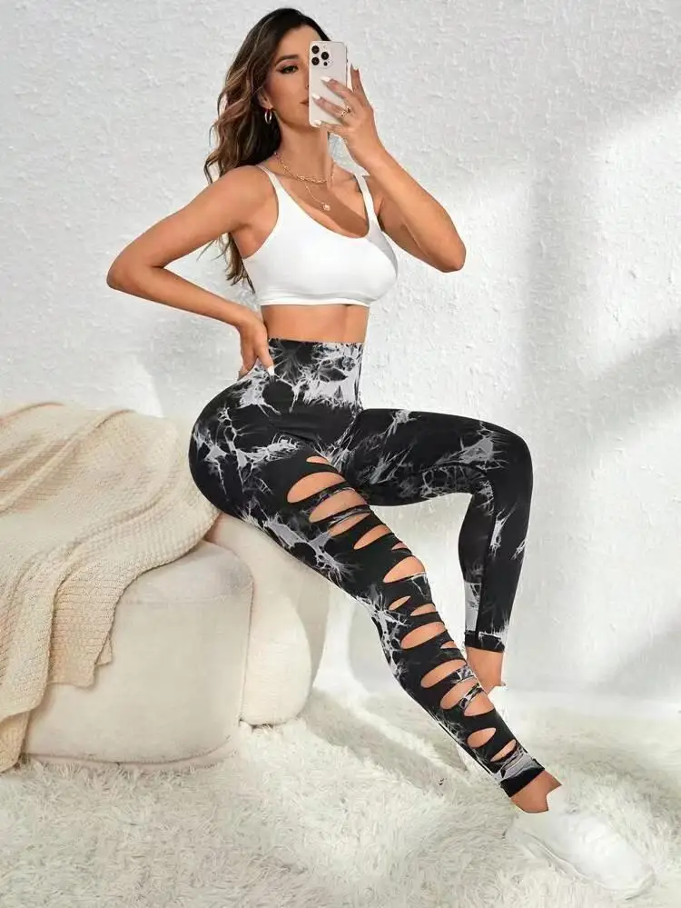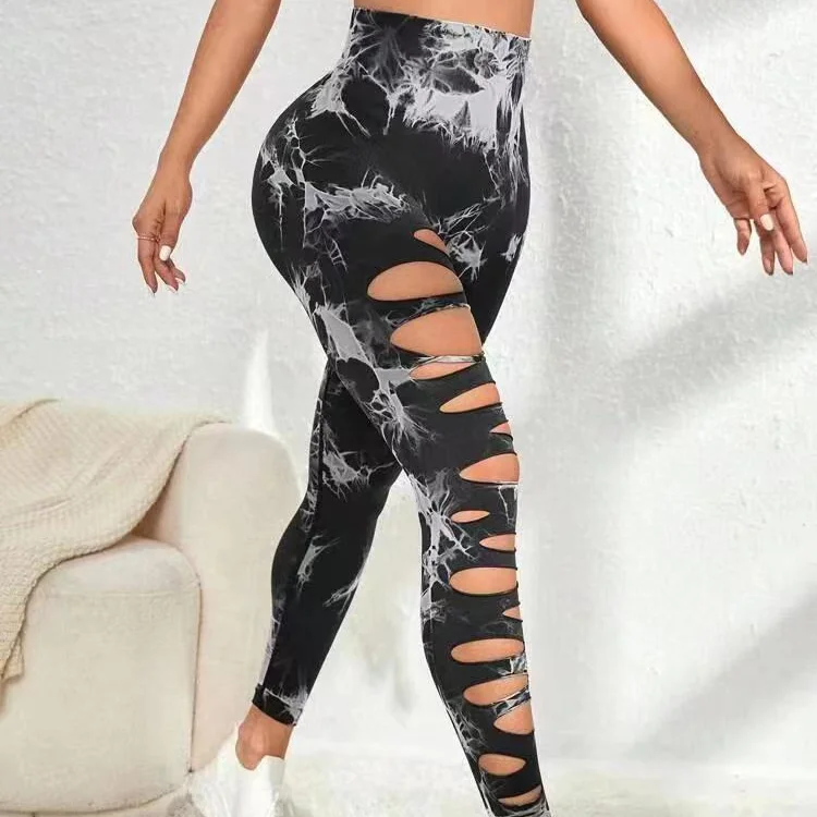 | Product Name | New Arrival Fashion High Waist Butt Lifting Seamless Workout Leggings Skinny Tie Dye Hollow Out Yoga Pants For Women |