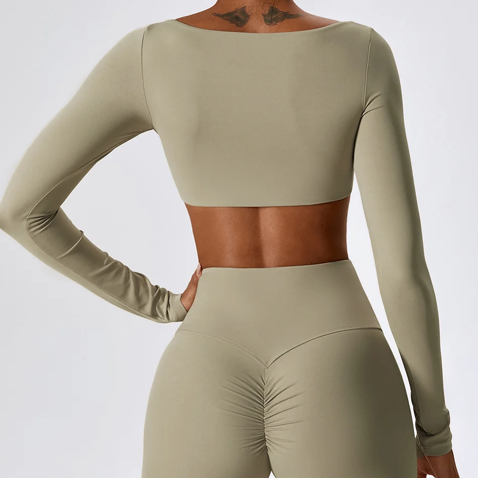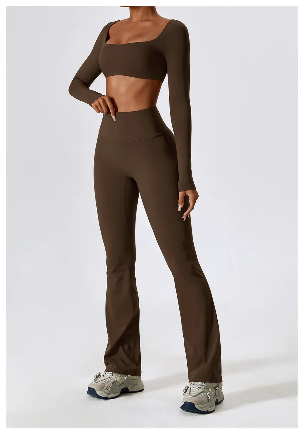 | Product Name | New Arrival Long Sleeve Crop Mint Color Two Piece Yoga Sets High Waist Flared Solid Workout Sets For Women |