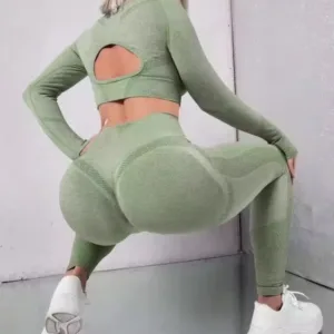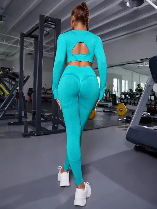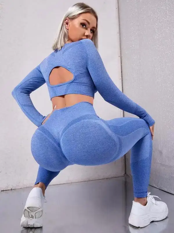 Product Name New Arrival Long Sleeve Crop Top High Waist Gym Legging Workout Sport Bra Seamless Ribbed Two Piece Yoga Sets For Women
