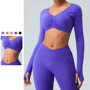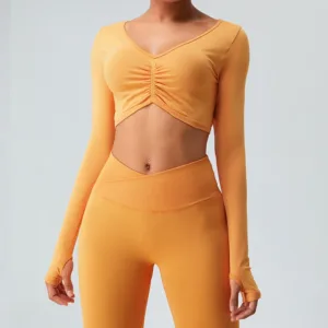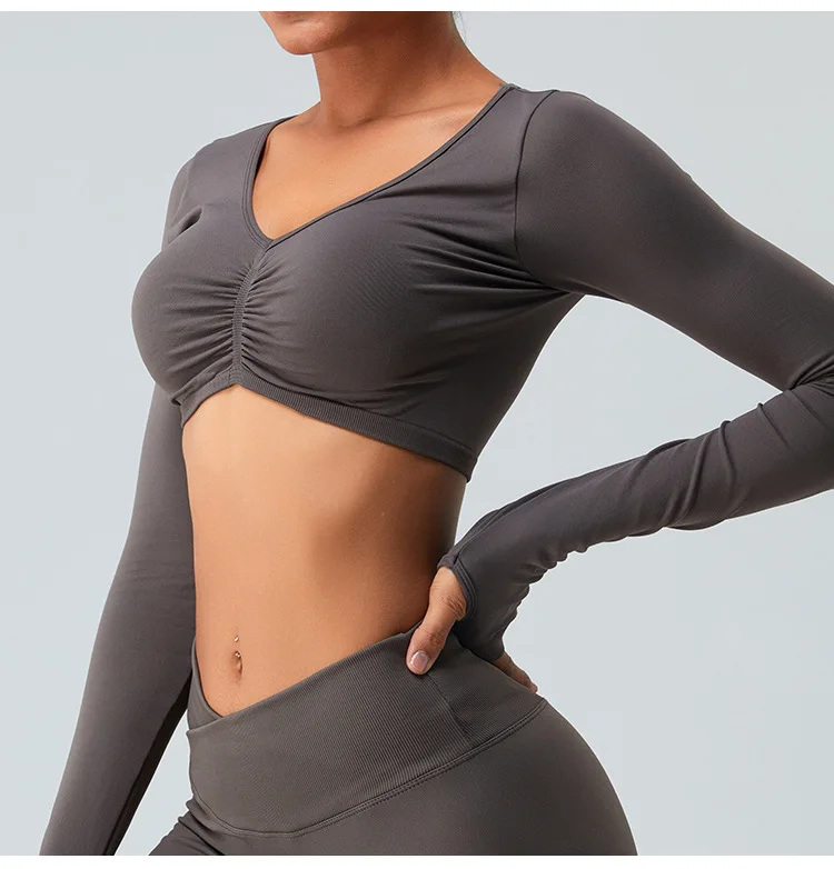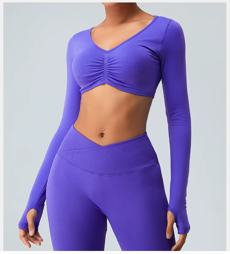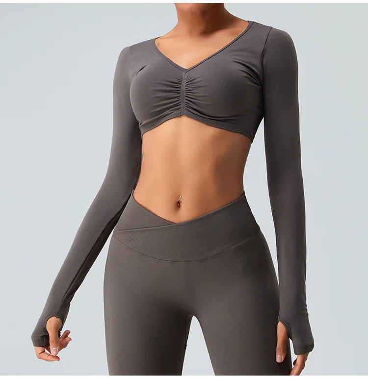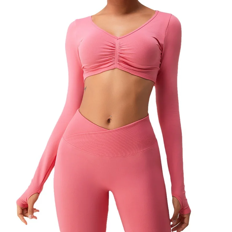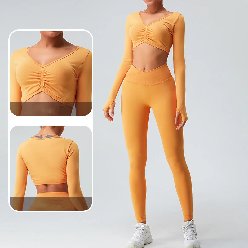 | Product Name | Solid color lace pleat design Long sleeve crop top Leggings set for women Yoga set for adults Quick dry fitness set | ||||