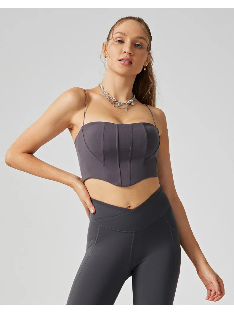 | Product Name | Fashion Ladies Knitted Crop Top Shirt Quick Dry Solid Pleated Yoga One Shoulder Sports Bra |