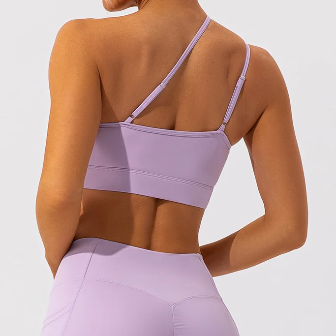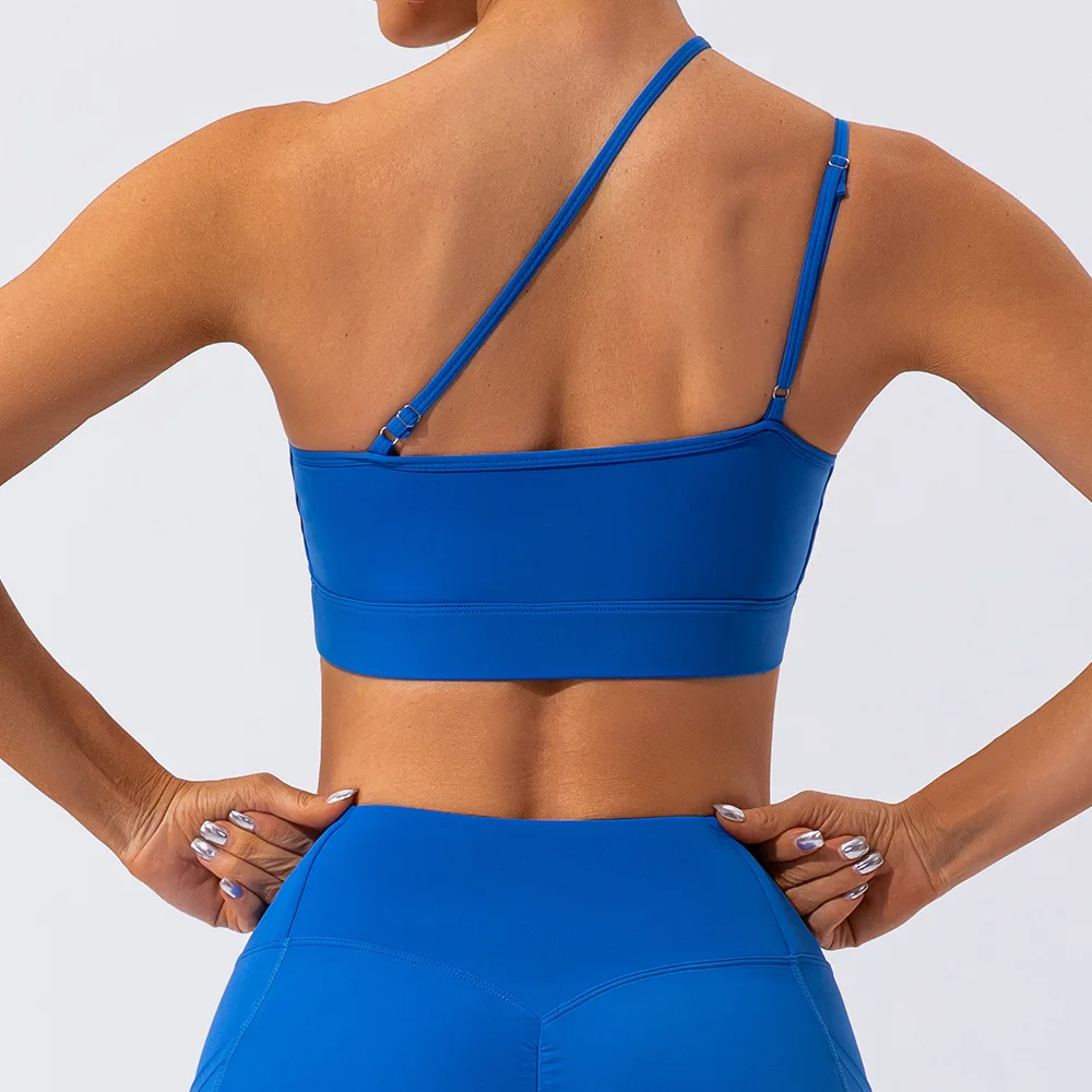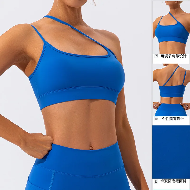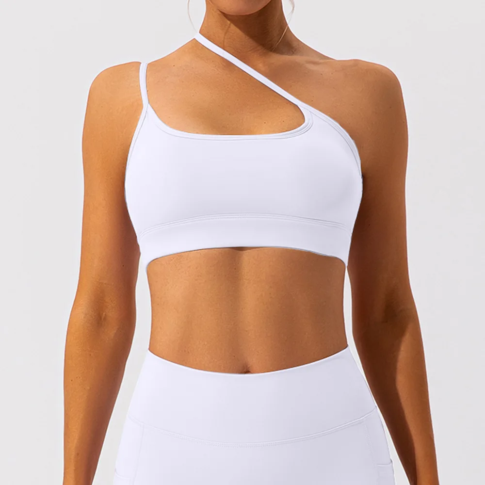 Product Name New Design Wholesale High Support Seamless Sport Bra One Shoulder Adjustable Spaghetti Strap Padded Women Sports Bra