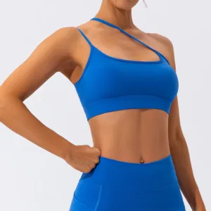 New Design Wholesale High Support Seamless Sport Bra One Shoulder Adjustable Spaghetti Strap Padded Women Sports Bra