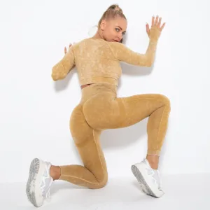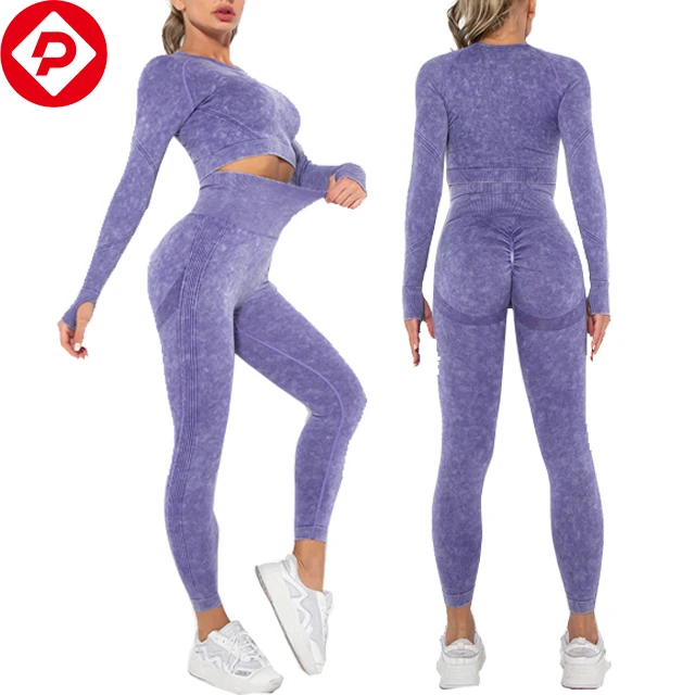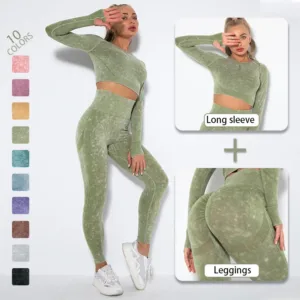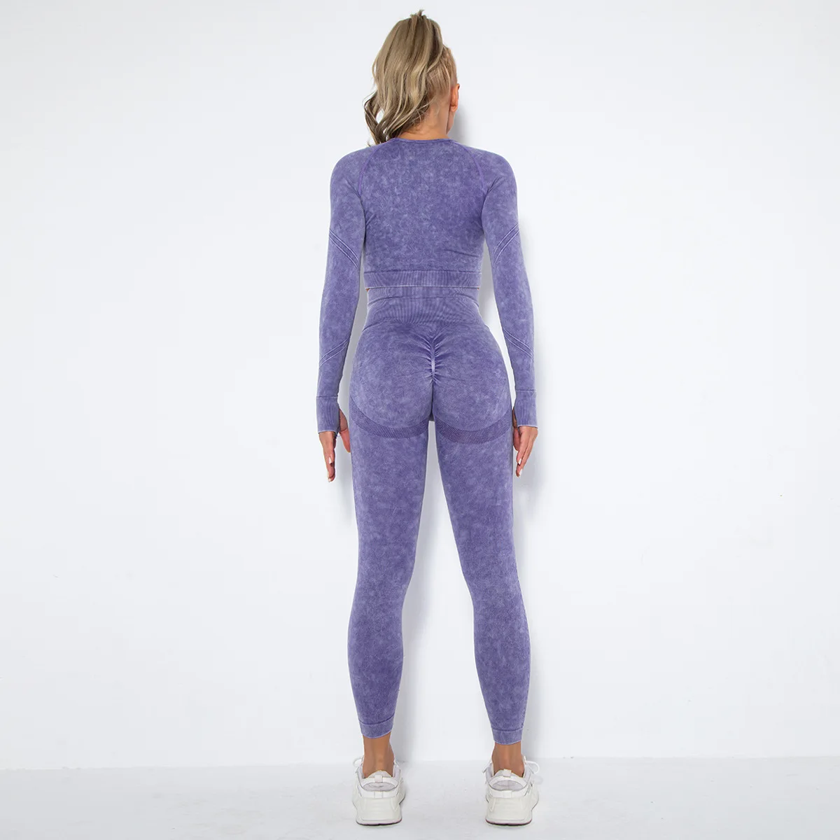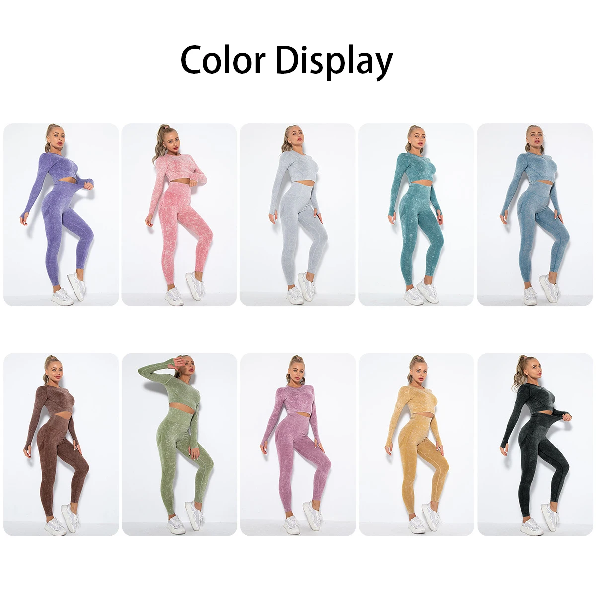 | Product Name | New Design Women 2 Piece Active Wear Set Gym Fitness Washed Color Long Sleeve High Waist Leggings Seamless Yoga Set |