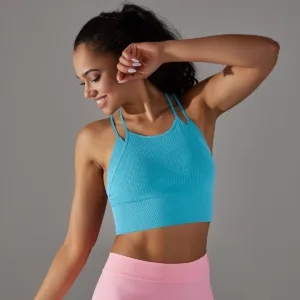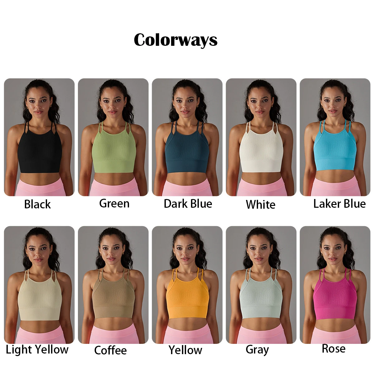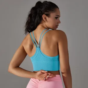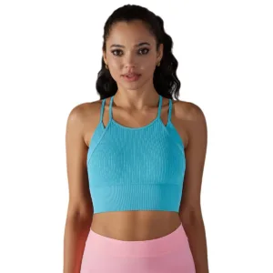 Product Name New Design Women Double Layer Workout Top Vest Backless Seamless Knitted Ribbed Thin Strap Sports Bra