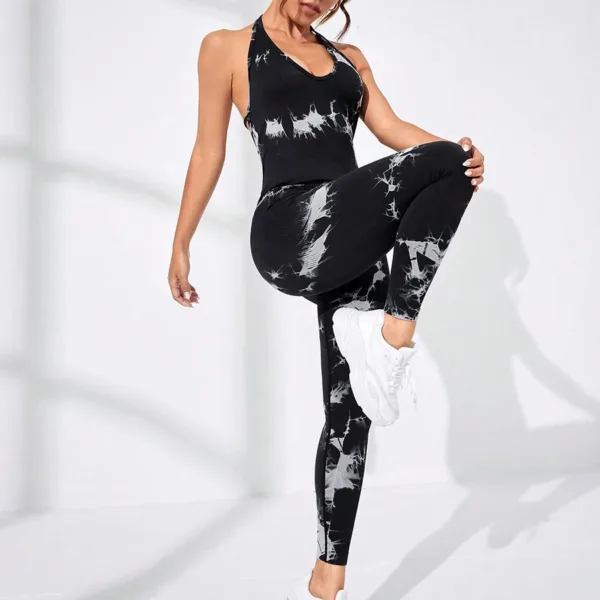 Product Name New Lightweight One Piece Sportswear Backless Tie Dye Print Seamless Halter Women Yoga Bodysuit Jumsuits