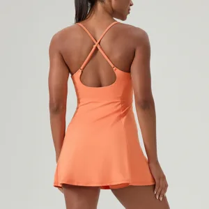 Outdoor Golf Sportswear Cross Back One Piece Athletic Skirt Suspender Padded Tennis Dress for Women