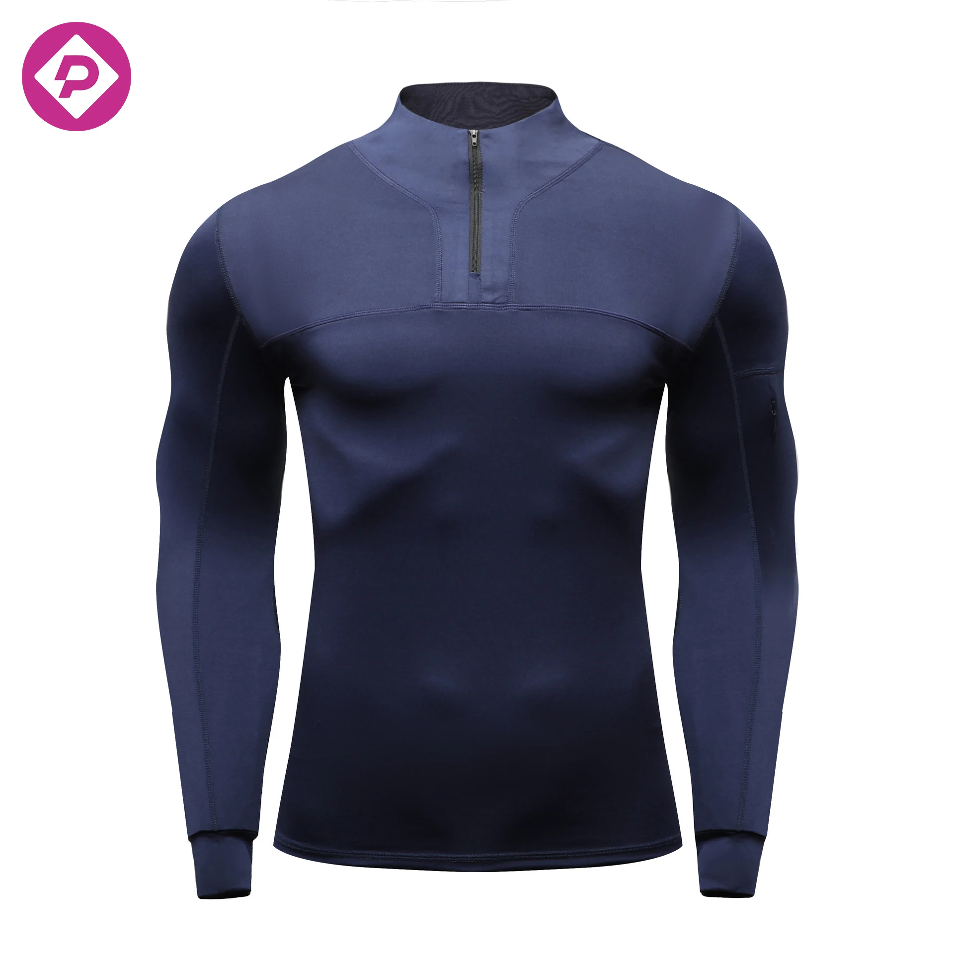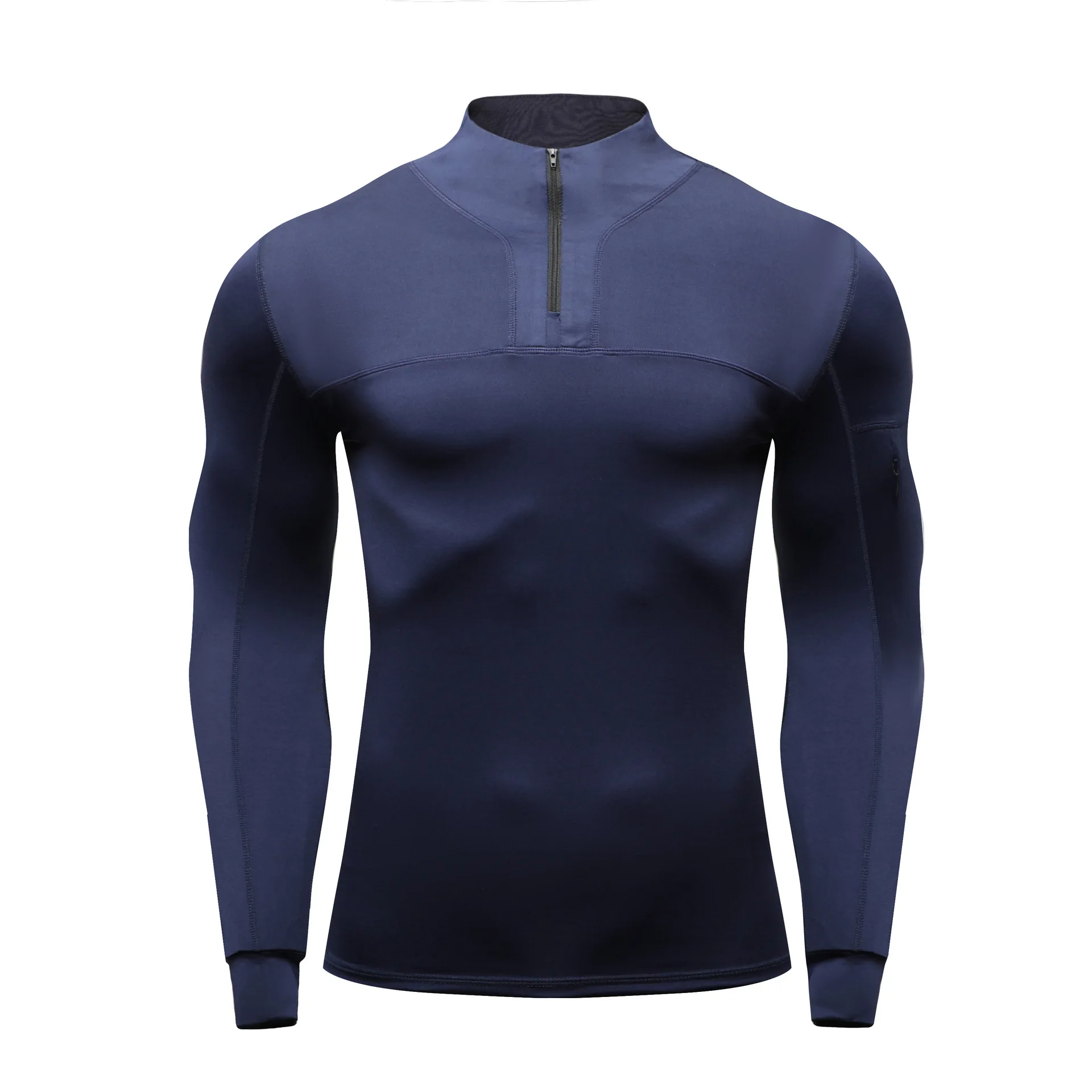 Outdoor Workout Sports Wear Slim Fit 1/4 Quarter Zip Top Long Sleeve Jogging Track Top Men Compression Gym Shirt