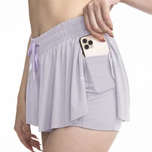 Popular High Waist Safety Lining Flowy Sports Fitness Shorts Activewear Gym Running Tennis Drawstring Stretchy Sport Shorts