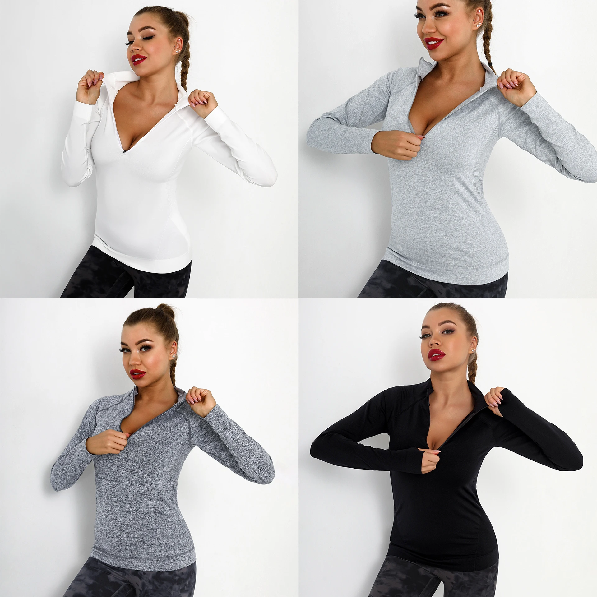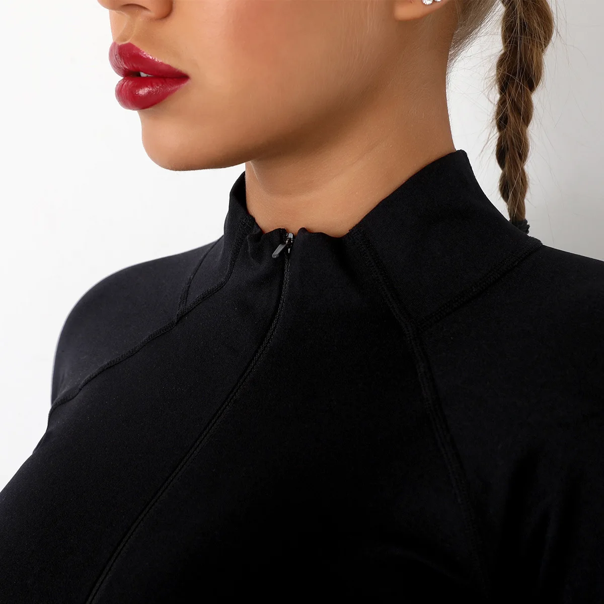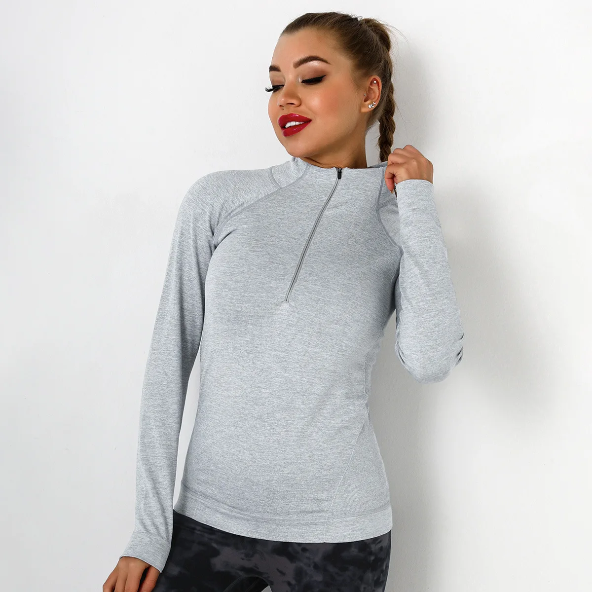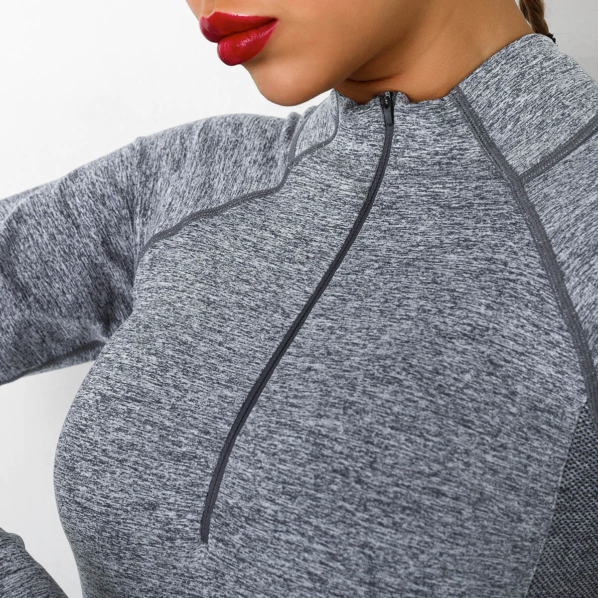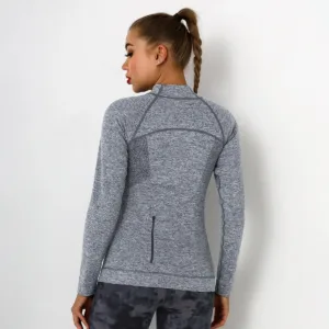 Sexy Ladies Gym Fitness Wear Yoga Top Stand Collar Knitted Quick Dry Custom Logo Quarter Zip Sweatshirt