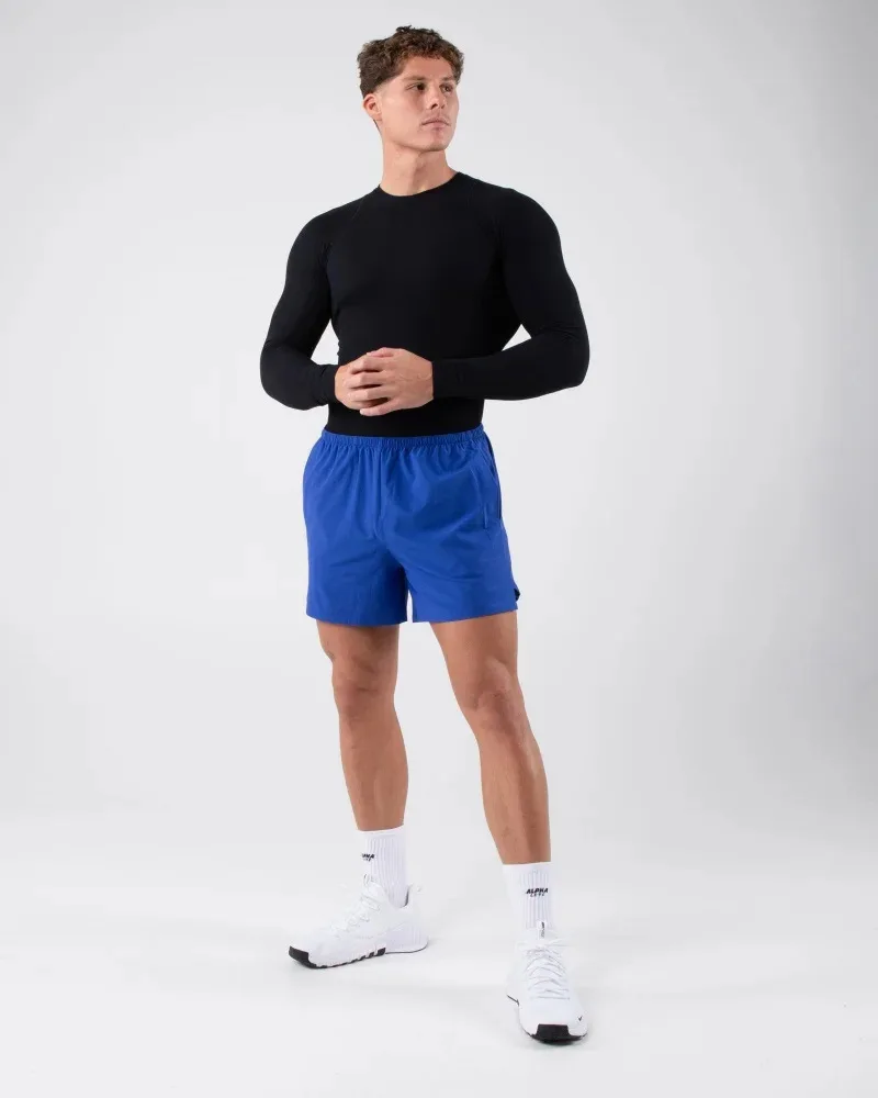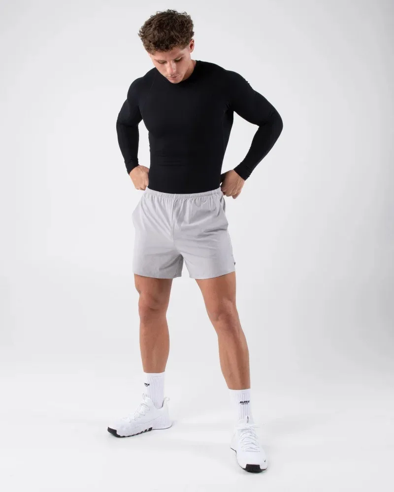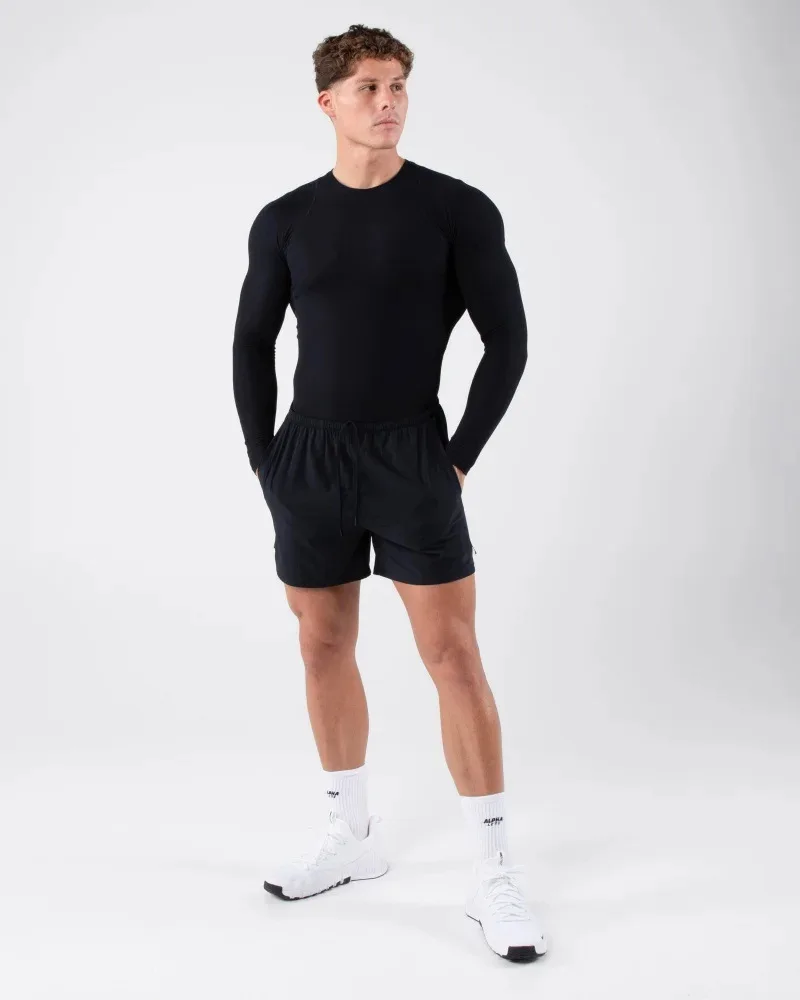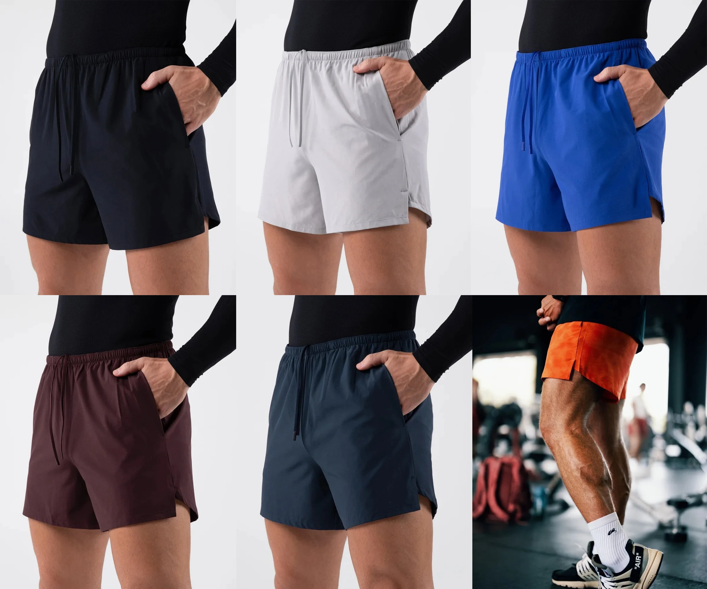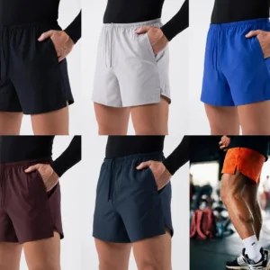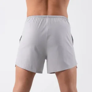 Split Hem Inner Drawstring Factory Wholesale Light Men Gym Shorts Custom Design Woven Fabric 5 Inseam Men’s Training Shorts
