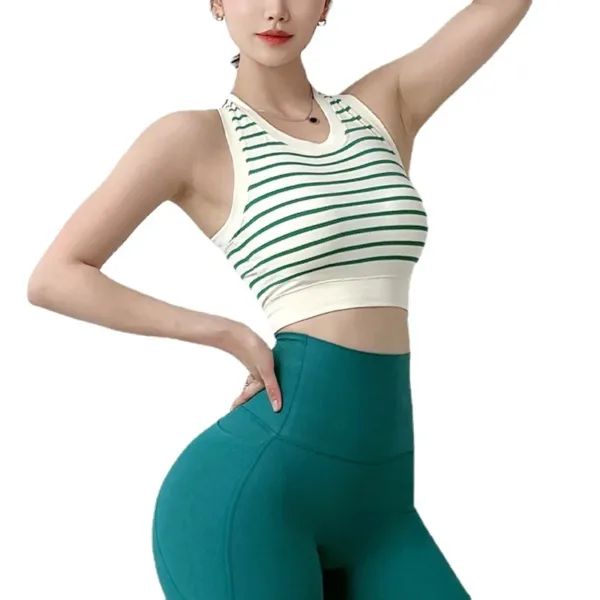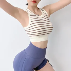 Product Name | Summer Ladies Girls Yoga Fitness Workout Vest Racer Back Tank Top Stripe Padded Sports Bra for Women |