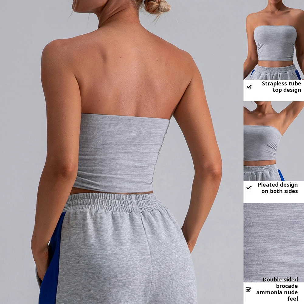 Summer Ladies Sports Strapless Bandeau Yoga Pilates Top Soft Lightweight Breathable Backless Sports Bra