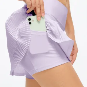 Summer Outdoor Gym Workout Running Biker Golf Yoga Skirt Pleated High Elastic Women Tennis Dress with Shorts