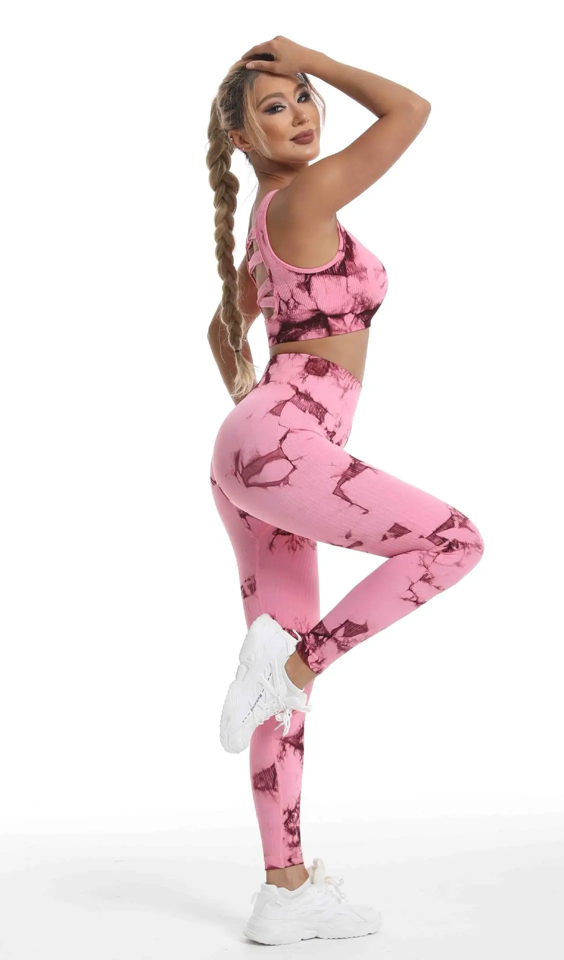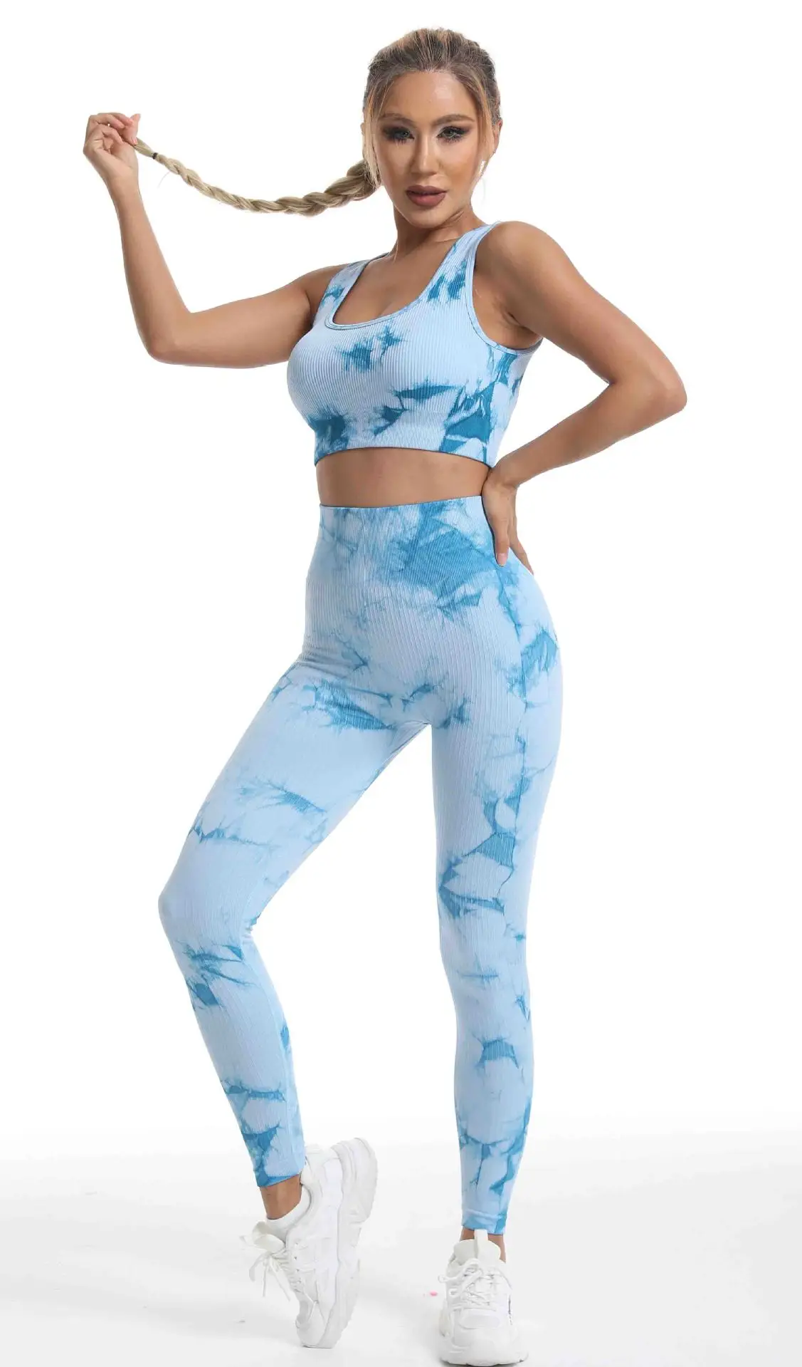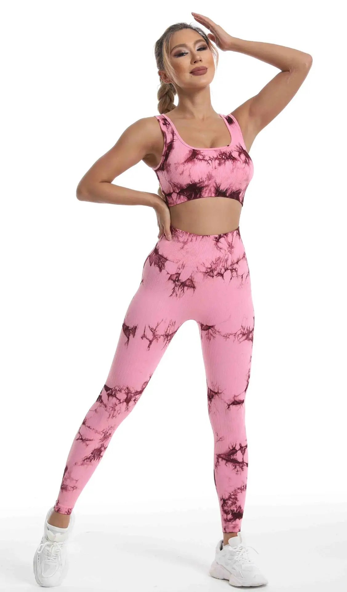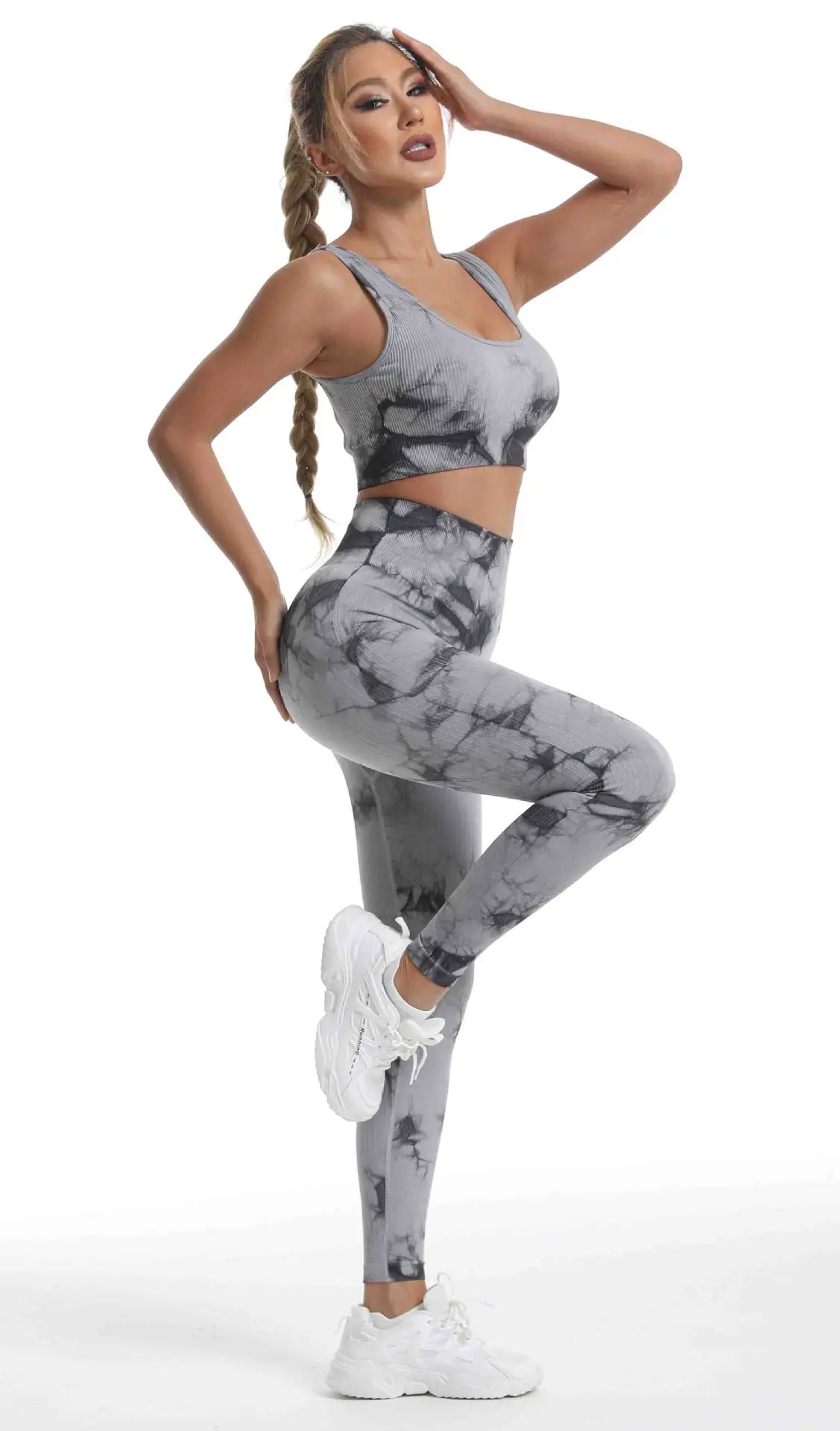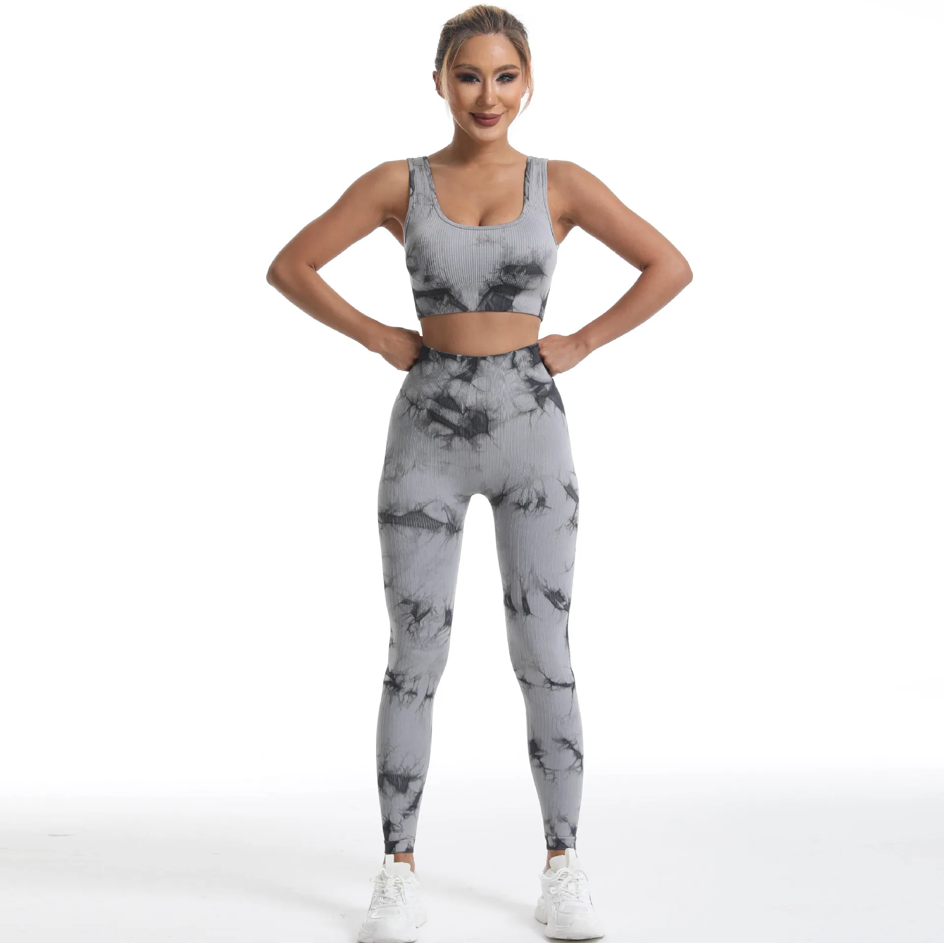 Product Name | Summer Sports Wear Women Set Tie Dye Print Moisture Wicking Acrylic Spandex Seamless Yoga Sets |