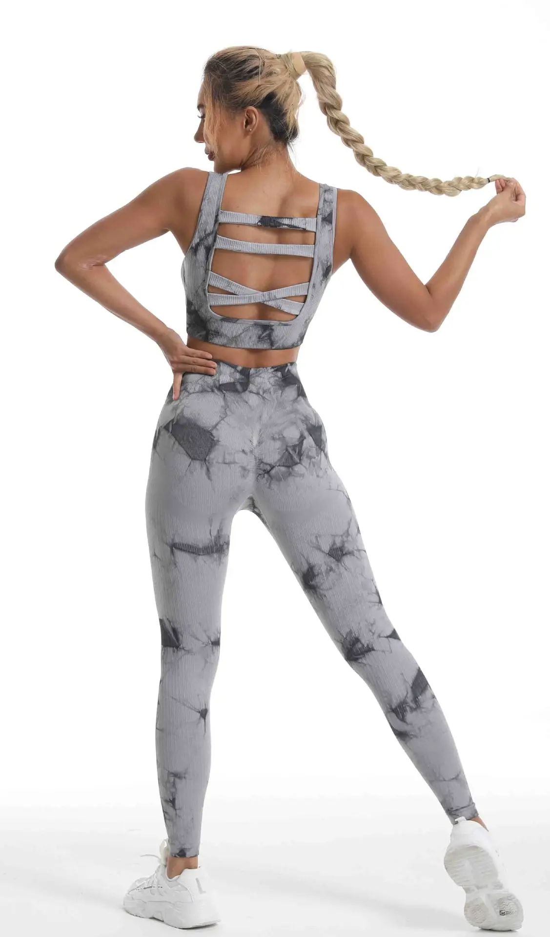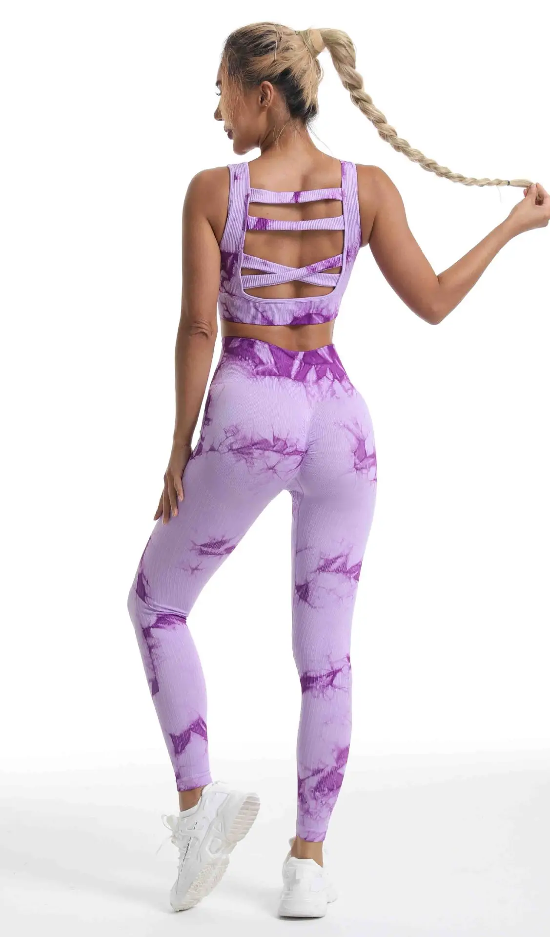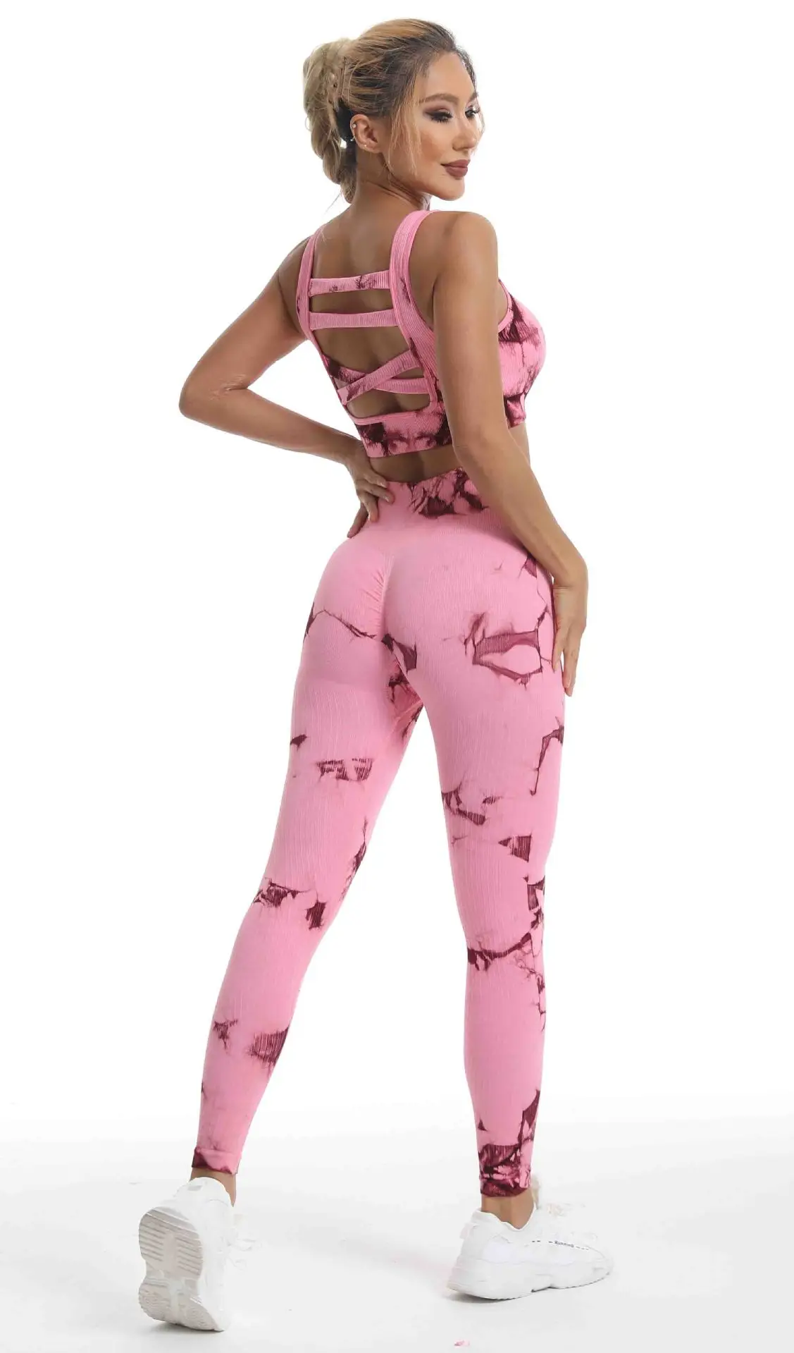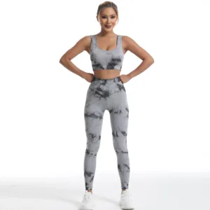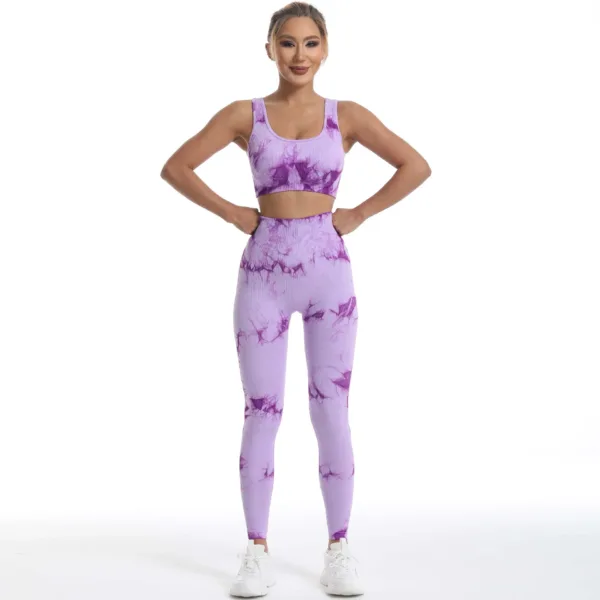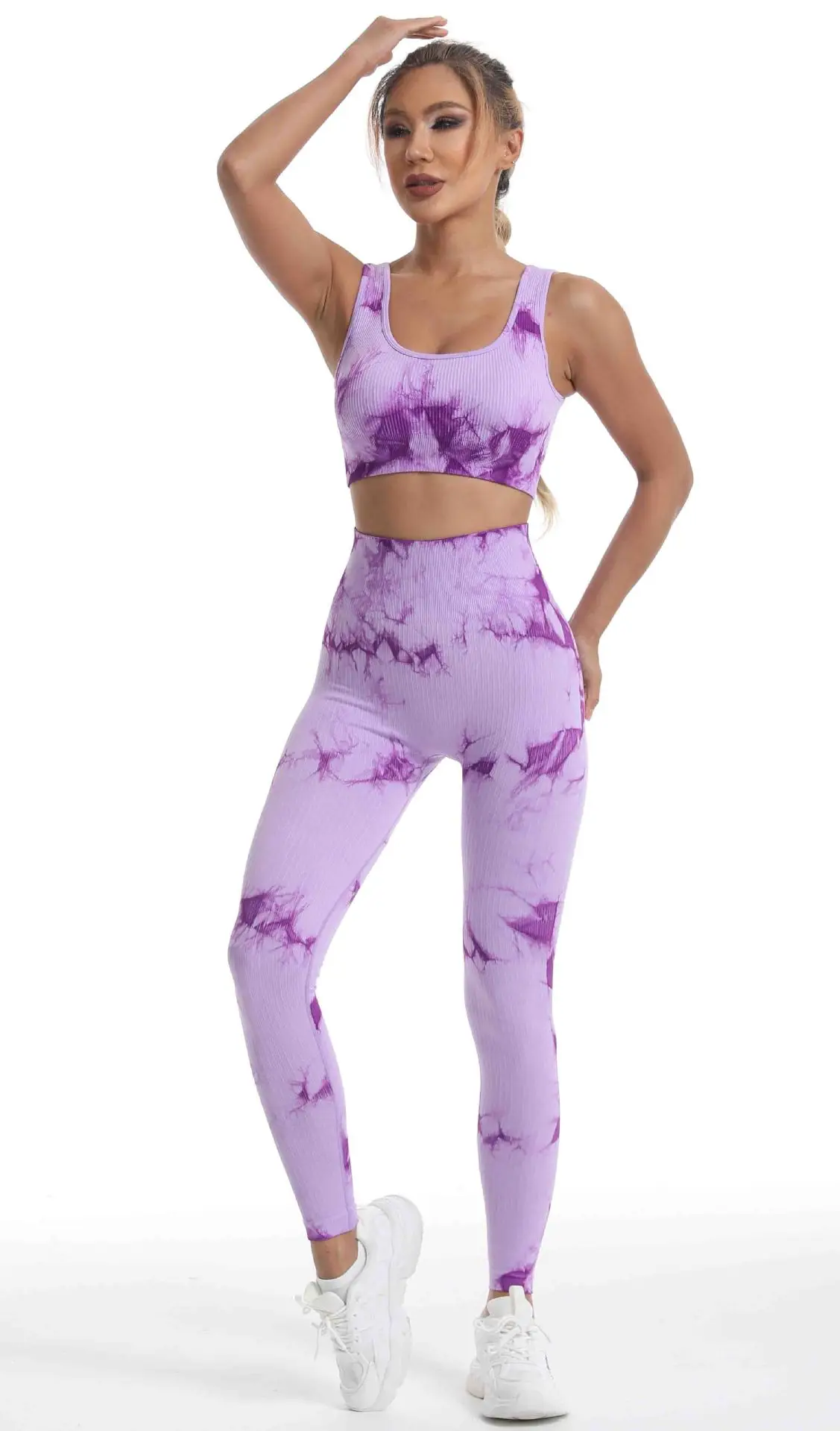 Product Name | Summer Sports Wear Women Set Tie Dye Print Moisture Wicking Acrylic Spandex Seamless Yoga Sets |