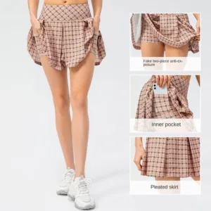 Product Name Summer Outdoor Gym Pleated Tennis Golf Skirt With Pocket Plain Running Picketball Tennis Dress for Women