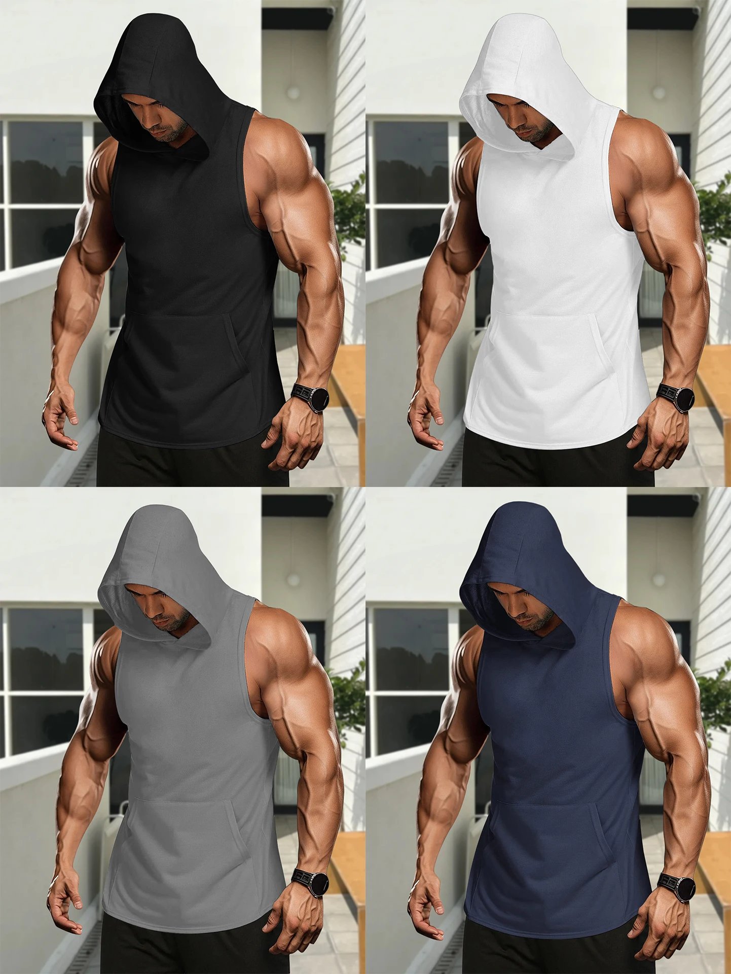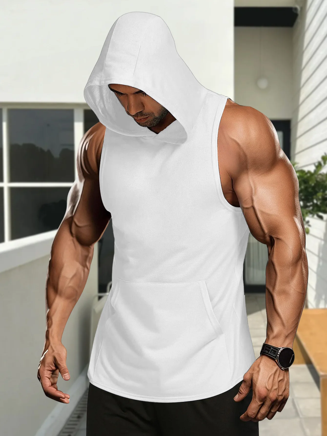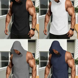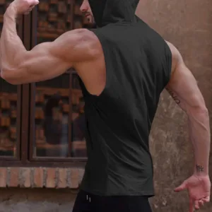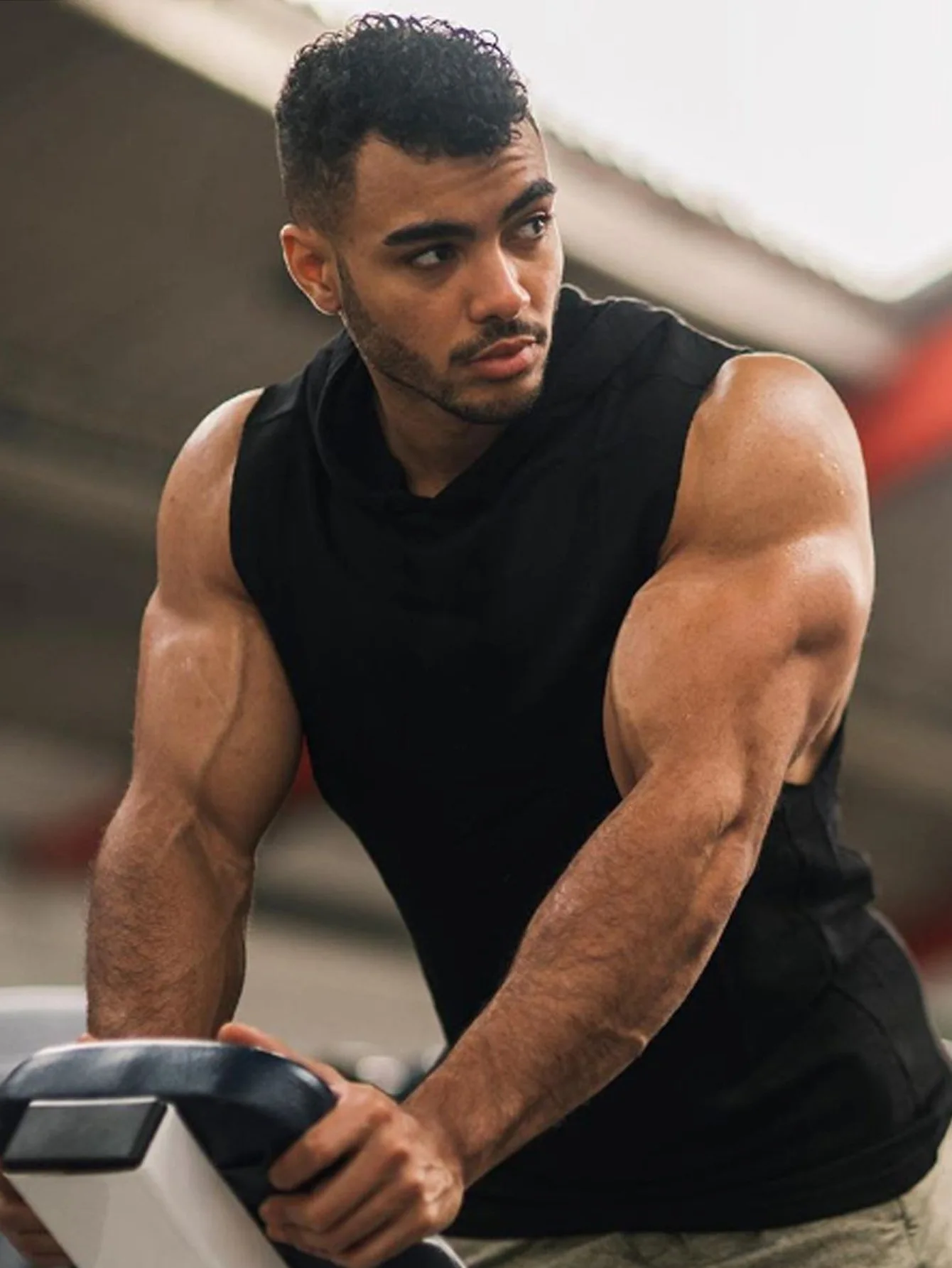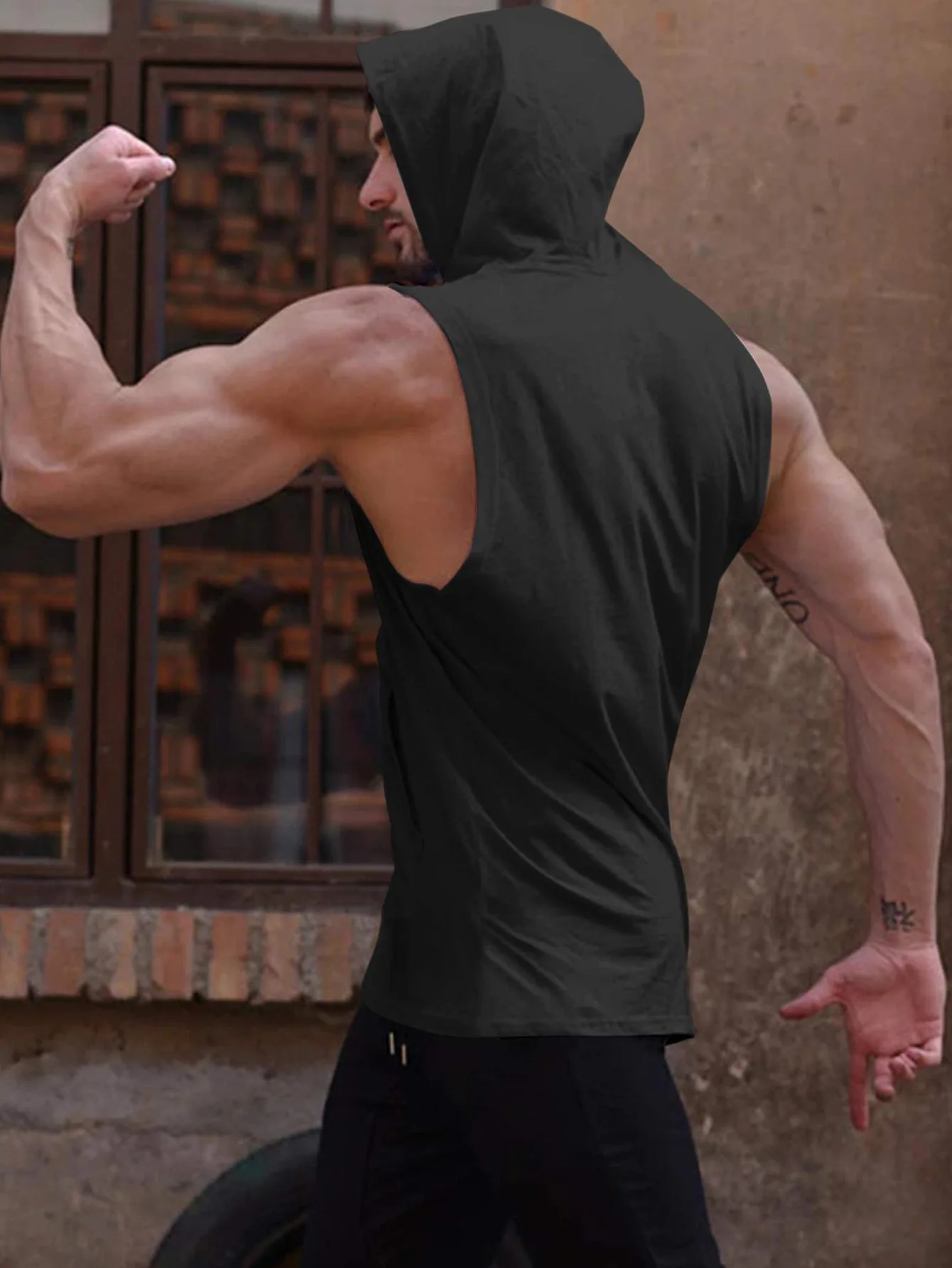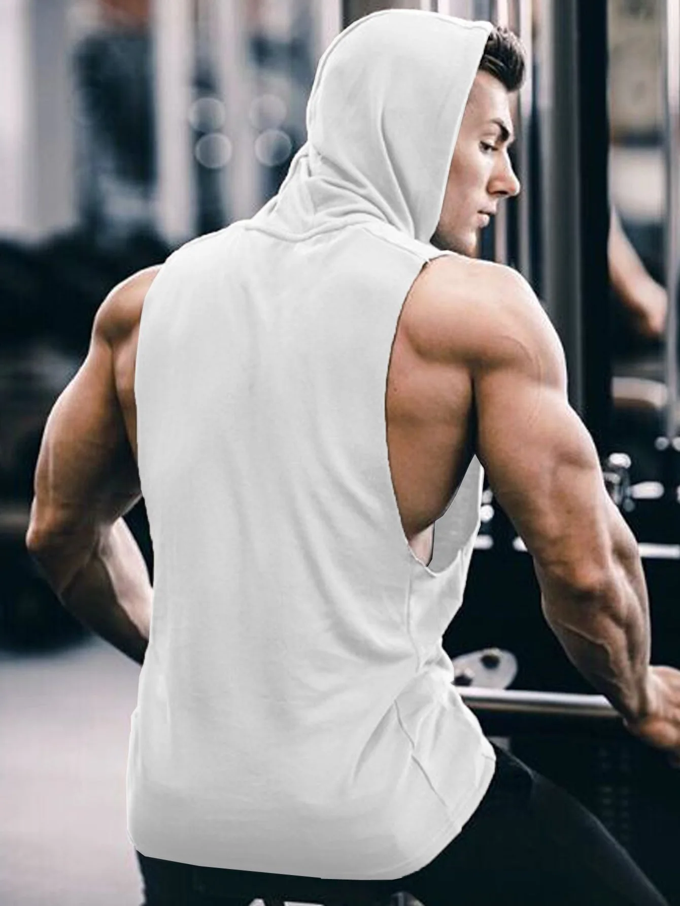US Size Custom Logo Fitness Vest Quick Dry Elastic Sports Fitness Shirt Men Workout Clothes Muscle Hooded Tank Top