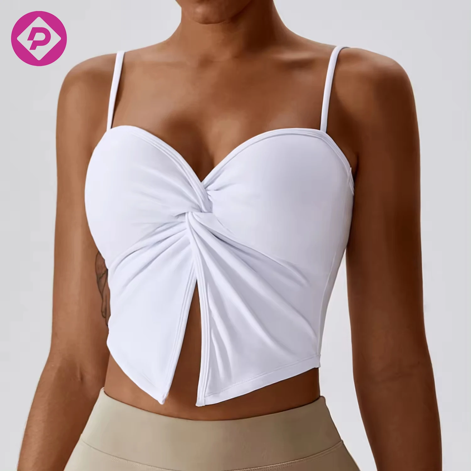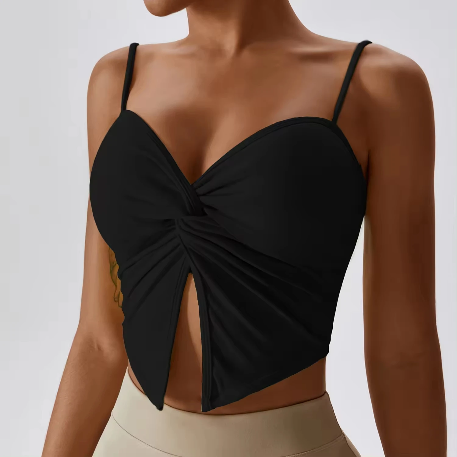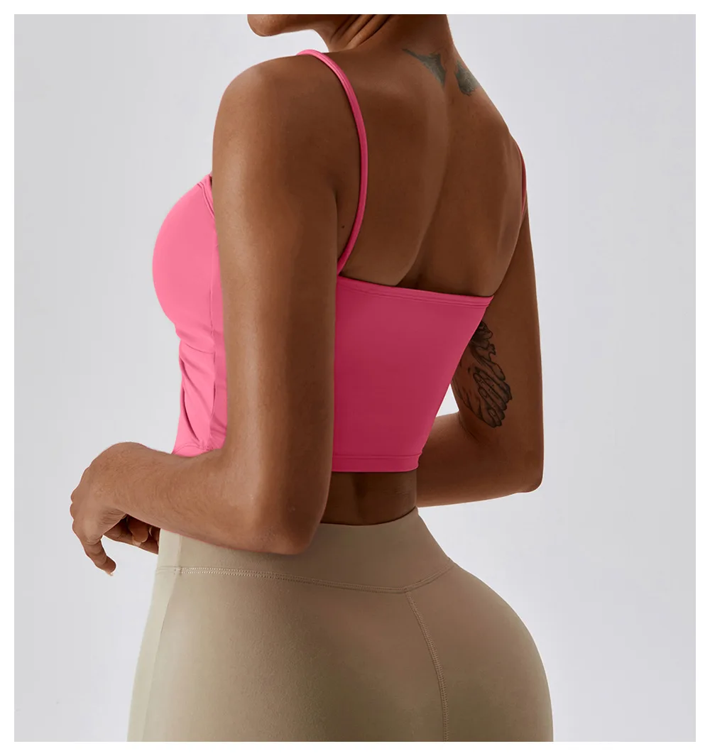 Wholesale Women Gym Workout Fitness Tank Vest Top Clothing Yoga Camisole Solid Sports Bra With Thin Strap