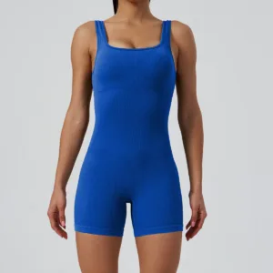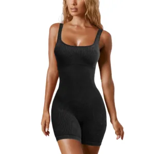 Wholesale Workout Seamless Ribbed Women Jumpsuit Short Rompers Plain Color Fitness One Piece Yoga Jumpsuit