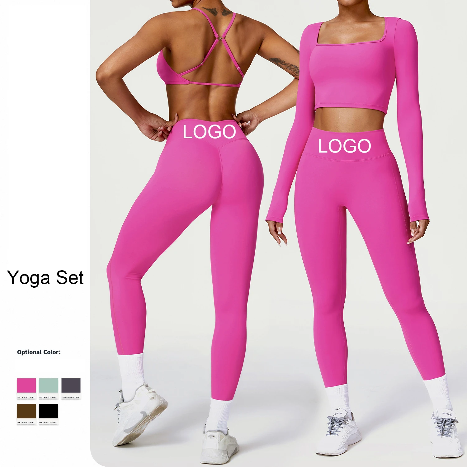 | Product Name | Custom Solid Knitted Running Sports Bra High Waist Yoga Pants Seamless Gym Wear Fitness Set Yoga Suit |