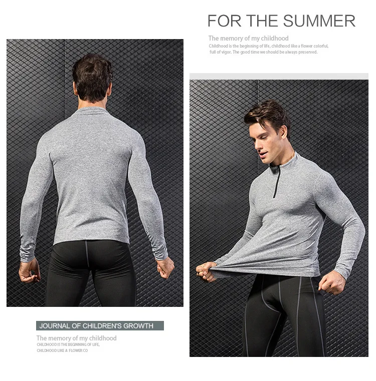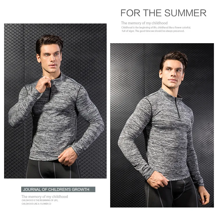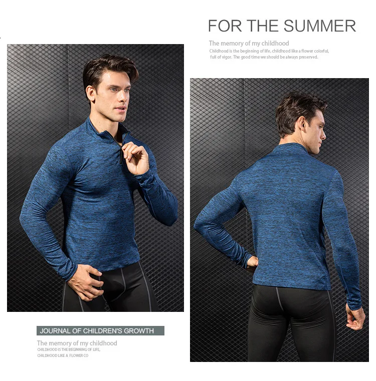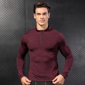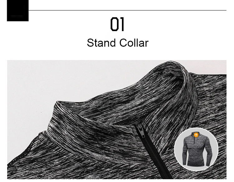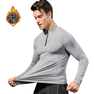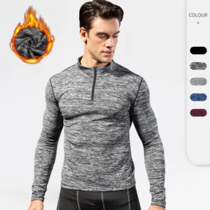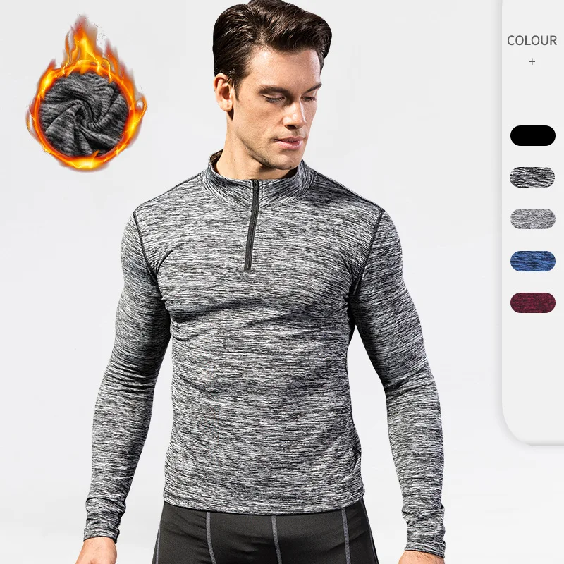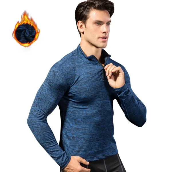 Winter Warmed Men Long Sleeve Compression T-Shirt Muscle Training Gym Fleece Stand-Collar Fitness Top Half Zip Sweatshirt