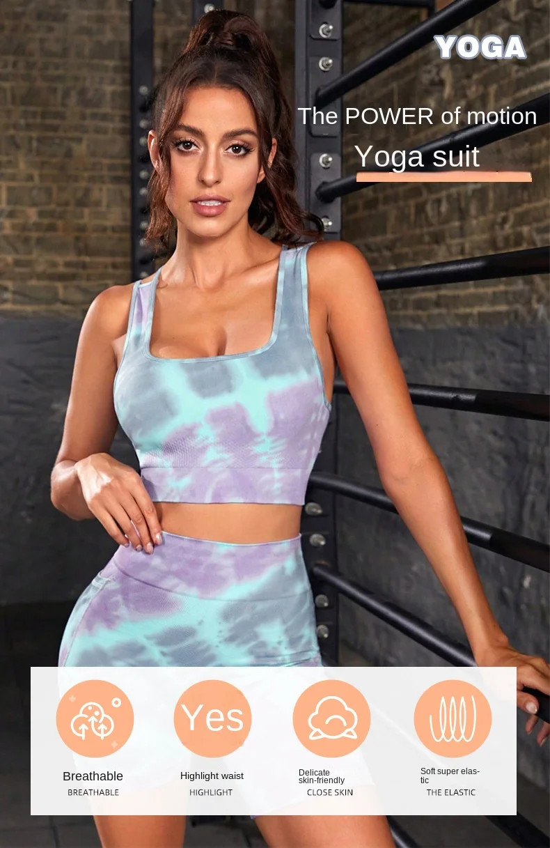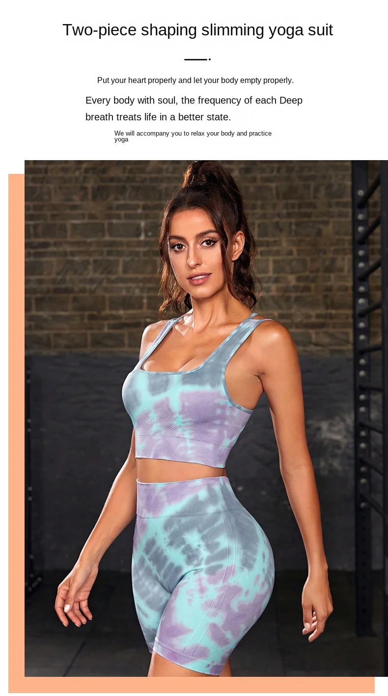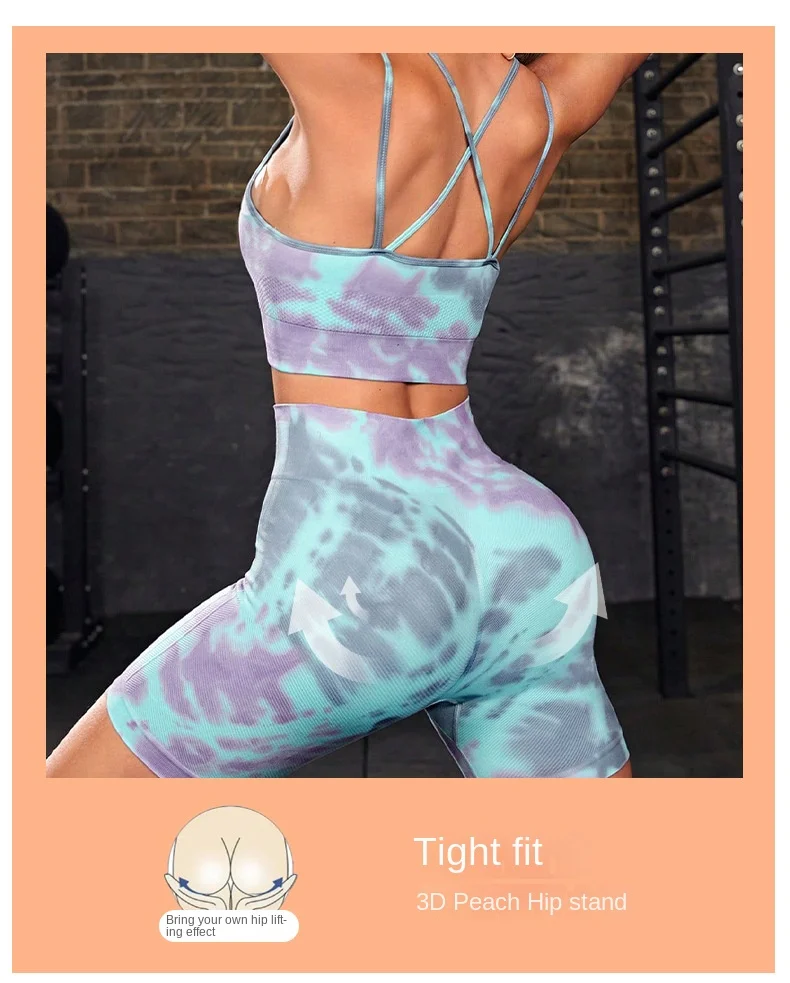 Product Name Women 2 Piece Yoga Suits Gym Fitness Sets Butt Lift Tie Dye Gradient Color Print Sports Bra Shorts Seamless Yoga Set