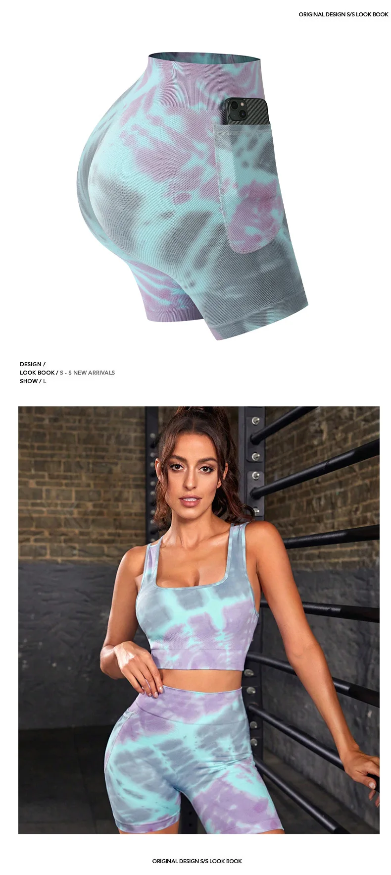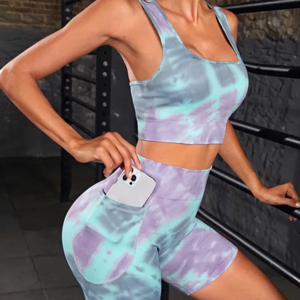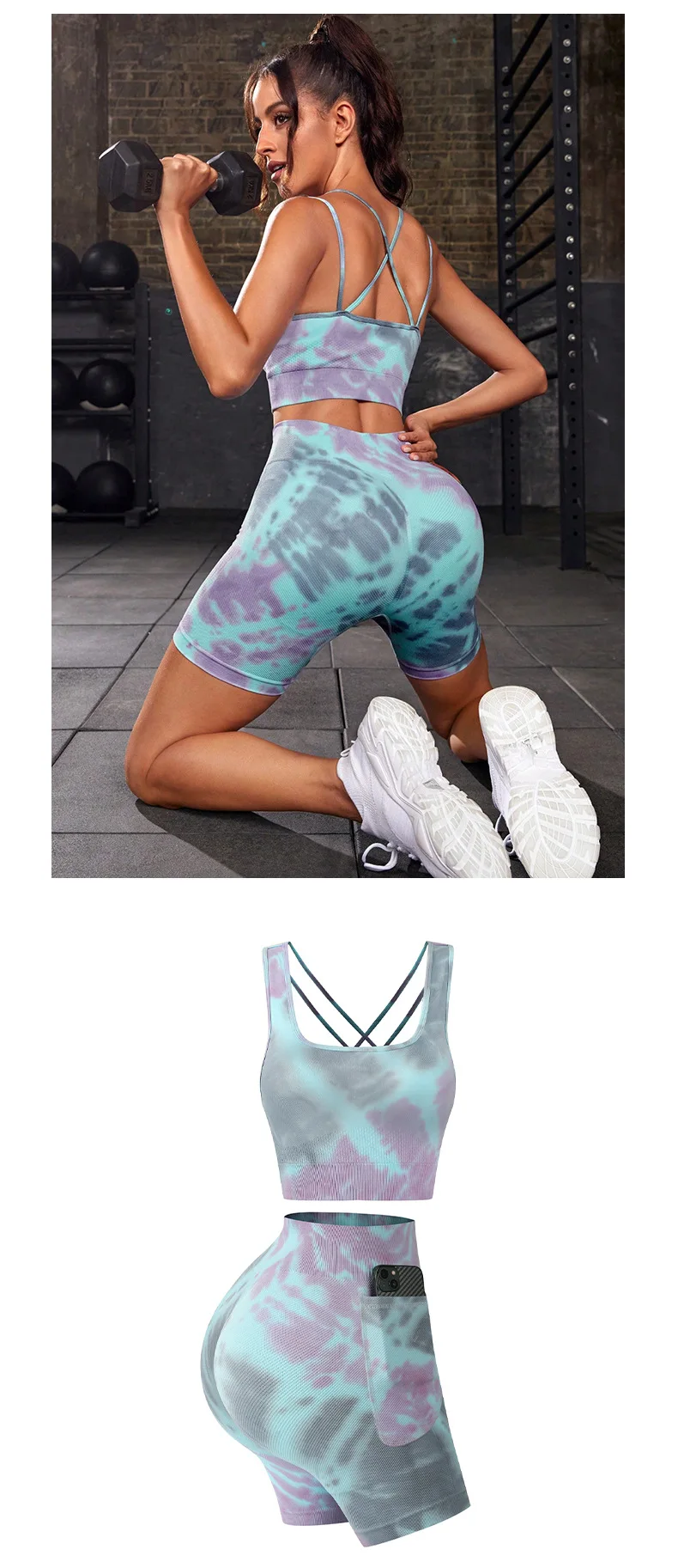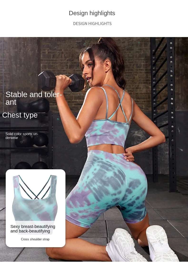 Product Name Women 2 Piece Yoga Suits Gym Fitness Sets Butt Lift Tie Dye Gradient Color Print Sports Bra Shorts Seamless Yoga Set