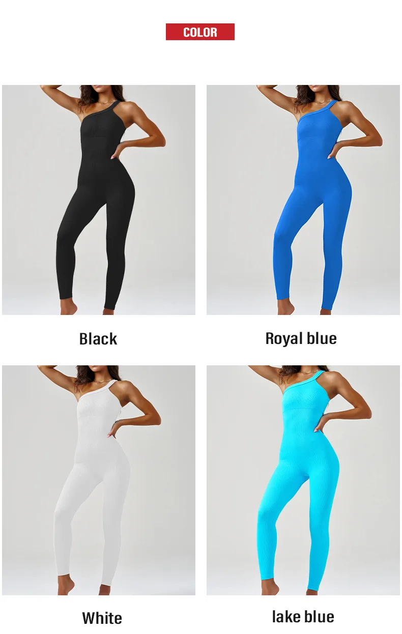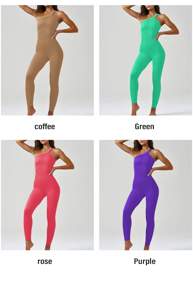 Product Name Women Jumpsuits Gym Romper One Shoulder Sports Seamless Ribbed One Piece Workout Yoga Jumpsuits