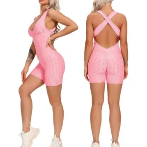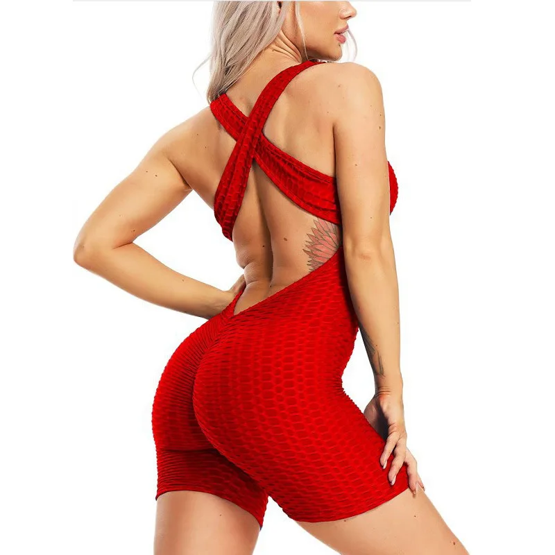 Product Name | Women One Piece Gym Jumpsuits Casual Running Fitness Sportswear Backless Bodysuit Bubble Jacquard Workout Jumpsuit |