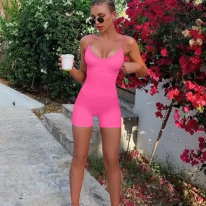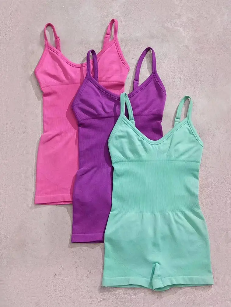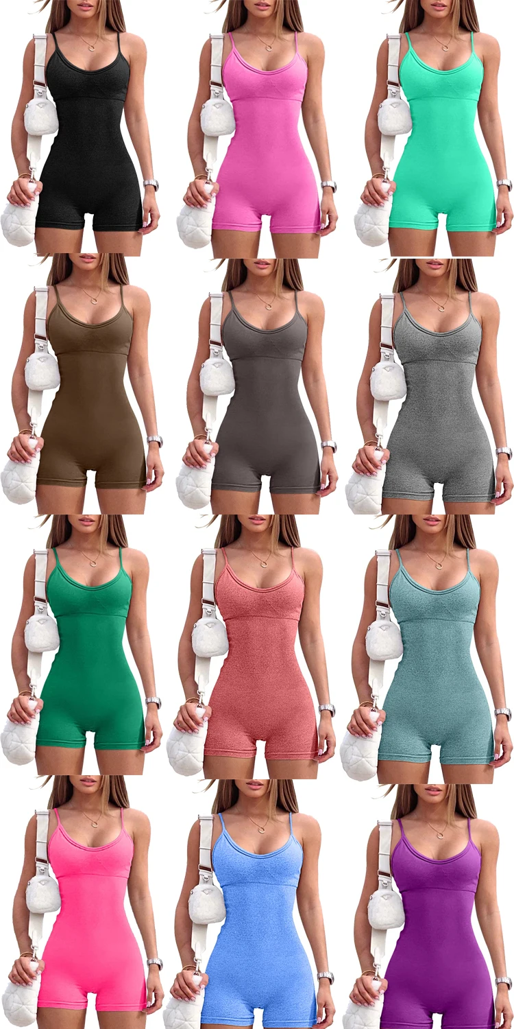 Women Yoga Jumpsuit Workout Seamless Lady Sports Ribbed Short Rompers Sleeveless Fitness One Piece Jumpsuit