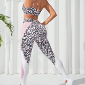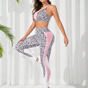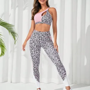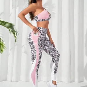 | Product Name | Women Yoga Wear Gym Fitness Set Leopard Print One Shoulder Cut Out Sports Bra And Leggings Set |